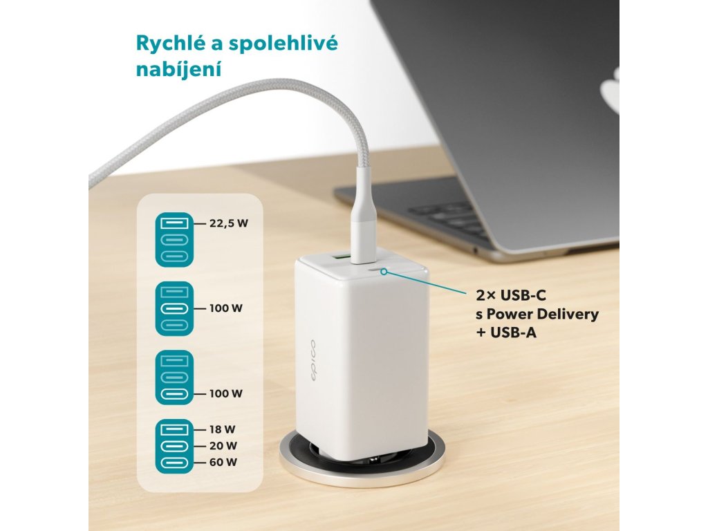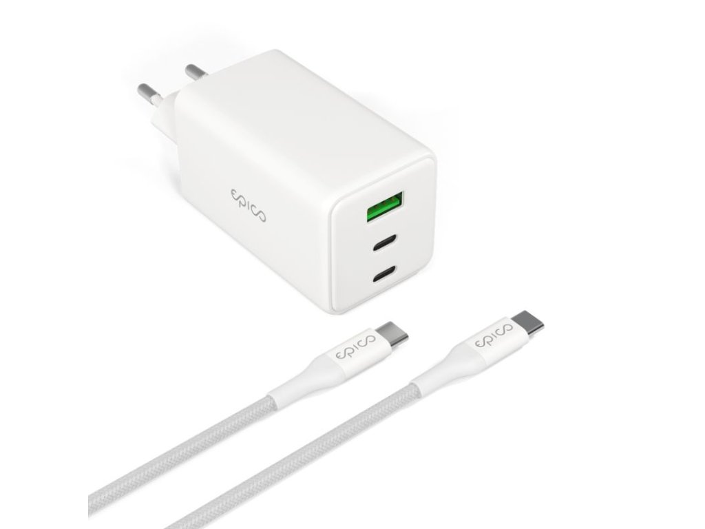 Rýchla nabíjačka Epico UltraBoost GaN 100W Power EA100 + 1,2 m kábel USB-C - biela