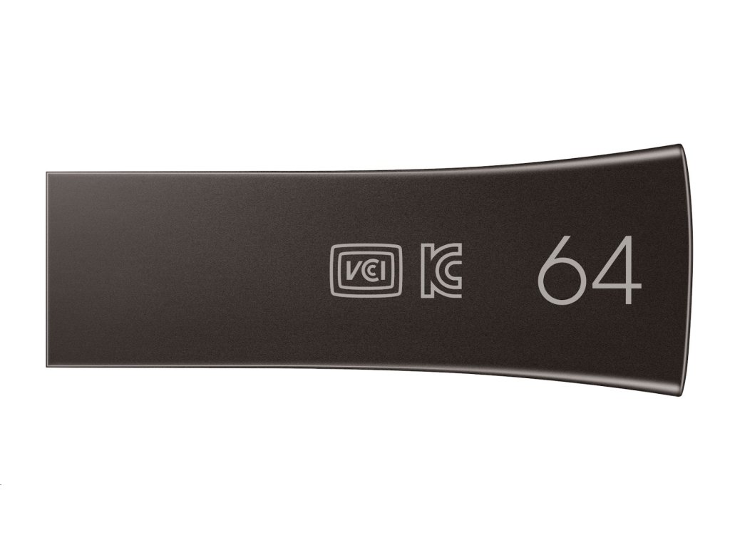 Rýchlosť vo veľkom štýle Klasika v modernom prevedení. Vďaka svojmu dizajnu a výnimočnej prenosovej rýchlosti sa nová generácia flash diskov BAR Plus stane vašim nepostrádateľným pomocníkom. Minimalistické kovové telo sa skvele drží a je ukážkou štýlu, ktorý perfektne dopĺňa vynikajúci výkon a spoľahlivosť. Bleskový prenos súborov Nestrácajte čas. Najnovší štandard rozhrania USB 3.1 poskytuje rýchlosť čítania až 300 MB/s*, takže vás už od práce ani zábavy nebude nič zdržiavať. Napríklad 3GB video v 4K UHD kvalite z flash disku BAR Plus skopírujete do svojho počítača počas 10 sekúnd. Rafinovaná odolnosť Je štýlový a odolný zároveň. Vďaka svojmu kovovému telu spoľahlivo ochráni vaše súbory. Navyše ho ľahko upevníte na kľúče, takže sa nemusíte obávať, že ho zabudnete. BAR Plus je spojením dych vyrážajúceho dizajnu a vysokej spoľahlivosti. Päťnásobná ochrana Vaše dáta budú vždy v úplnom bezpečí – kdekoľvek. Špičkové technológie a bohaté skúsenosti s výrobou flash diskov spoločnosti Samsung robia z BAR Plus mimoriadne spoľahlivé úložisko. Odoláva vode*, nárazom**, extrémnym teplotám***, magnetom**** aj röntgenovému žiareniu*****. A to všetko s päťročnou zárukou ******. Typ produktu USB 3.2 flash disk Použitie PC, notebook Rozhranie USB 3.2 prvej generácie (spätne kompatibilný s USB 3.0/2.0) Konektor Standard A Rozmery (Š × V × H) 15,46 × 40,00 × 12,00 mm Váha Približne 11,5 g Výkon Rýchlosť 1 3.0. Rýchlosť zápisu je nižšia ako rýchlosť čítania. * Rýchlosť sa môže líšiť v závislosti na pripojenom zariadení a prostredí. Prostredie Neprevádzková teplota -10~70 ? Prevádzková teplota 0~60 ? Odolnosť voči magnetom 15 000 G (Gauss) Odolnosť voči žiareniu 80 KV, 50 uA, 4 W, 500 sekúnd žiarenia Odolnosť voči vode Do hĺbky 1 m počas 72 hodín (3% NaCl slaná voda) Odolnosť voči nárazom Zrýchlenie 1 1 Certifikácia EMC KC, FCC, CE, VCCI, RCM Záruka Obmedzená záruka 5 rokovDodatočné parametre