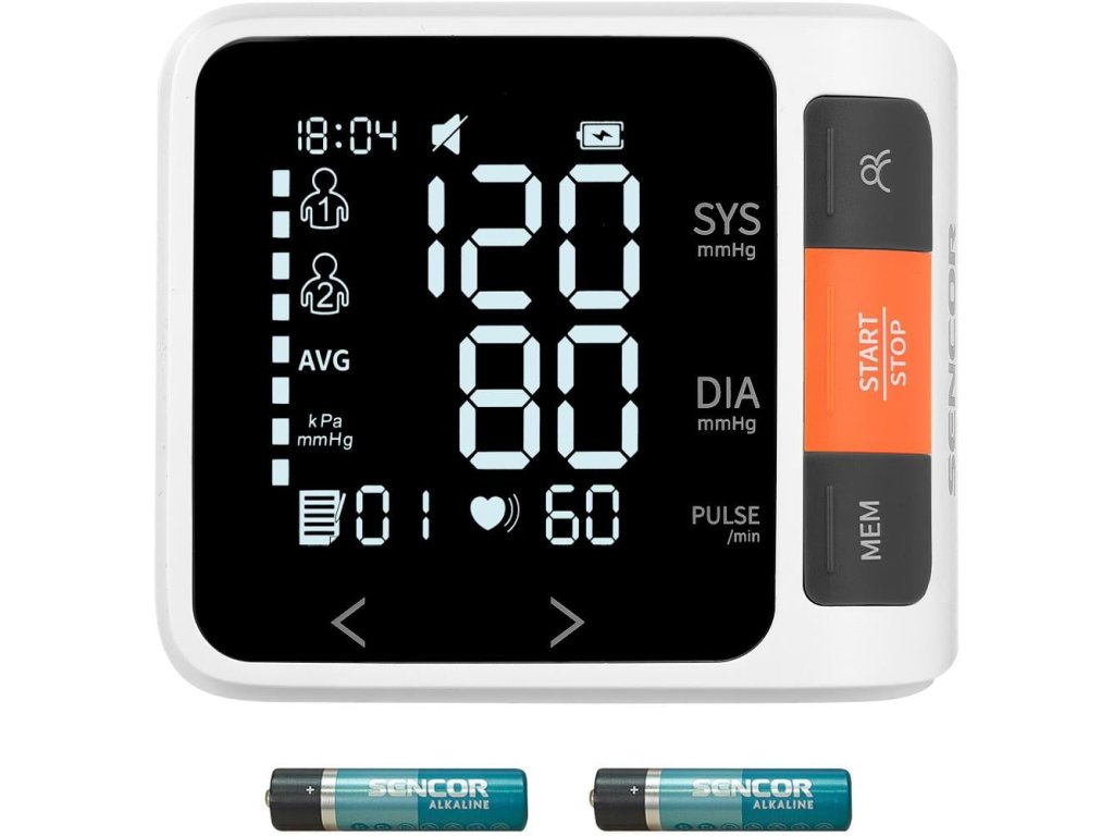 Tlakomer Sencor SBD 0900WH Meranie krvného tlaku a srdcovej frekvencie pomocou oscilometrie Na jednoduché meranie doma Detekcia nepravidelného srdečného rytmu Pamäť pre 2 užívateľov a 99 meraní s dátumom a časom Veľký dotykový displej: 49x36 mm Napájanie: 2 xDodatočné parametre