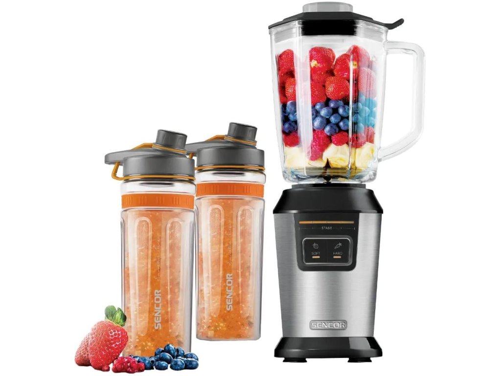 Pripravte si doma lahodné smoothie z čerstvého ovocia a zeleniny a vezmite si ho so sebou na cesty. Stolný mixér Sencor SBL 7550SS má hlavnú sklenenú nádobu s objemom 0,9 l. Okrem toho sú súčasťou balenia 2 cestovné láhve z nárazuvzdorného tritánu s objemom 0,6 l. Vďaka nim si môžete pripravený nápoj ľahko vzať so sebou. Tieto láhve sú prispôsobené aj na použitie v držiakoch pohárov v aute. V spodnej časti mixéra sa nachádzajú prísavky, ktoré sa postarajú o skvelú stabilitu počas používania. Integrovaný bezpečnostný mechanizmus a protišmykové nožičky zaisťujú maximálnu bezpečnosť. 2 prednastavené programy O starostlivé spracovanie jednotlivých ingrediencií sa postará 6 vysokokvalitných odnímateľných nožov z nehrdzavejúcej ocele s titánovým povrchom. Táto kombinácia zabraňuje strate enzýmov a vitamínov z ovocia a zeleniny. Zároveň omezuje oxidáciu smoothie. Môžete si vybrať z dvoch prednastavených programov. Program SOFT trvá 45 sekúnd a používa sa na prípravu jemných smoothies. Program HARD trvá 60 sekúnd a používa sa na spracovanie tvrdších surovin. Kľúčové vlastnosti: - Vhodný na mixovanie v mixéri: Stolný mixér so sklenenou nádobou Súčasťou balenia sú 2 cestovné láhve Výber z 2 prednastavených programov Prísavky pre väčšiu stabilituDodatočné parametre