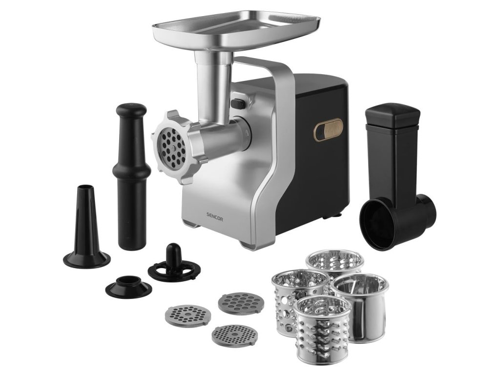S odolným mlynčekom na maso Sencor SMG 6400SL zvládnete prípravu všetkých mletých specialit. Prístroj má príkon 2 100 W a disponuje spätným chodom. Kovové prevody vám umožnia spracovať 2,2 kg masa/min. Súprava obsahuje 3 disky, nadstavec na klobásy, hliníkovú plniacu misu, vytláčadlo a protišmykové nožičky. Oceľové kotúče majú priemer 3/5/8 mm na extra jemné, jemné a hrubé mletie akéhokoľvek druhu masa. Pripravte si obľúbené masové guľky, strúhaný syr alebo rýchlo nakrájanú zeleninu. Mlynček absolútne plní funkciu krájača a strúhadla. Motor s výkonom 700 W / Maximálny výkon 2 100 W Kovové prevody Rýchle a jednoduché mletie rôznych druhov masa Výkon 2,2 kg/min 3 mlecie kotúče - veľmi jemný 3 mm / jemný 5 mm / hrubý 8 mm Mlecí nôž a kotúče z odolnej ocele klobásy a kubbe Krájač a strúhadlo: - krájanie na tenké plátky - hrubé krájanie/strúhanie - jemné krájanie/stieranie - strúhadlo na tvrdý syr a orechy protišmykové nožičkyDodatočné parametre