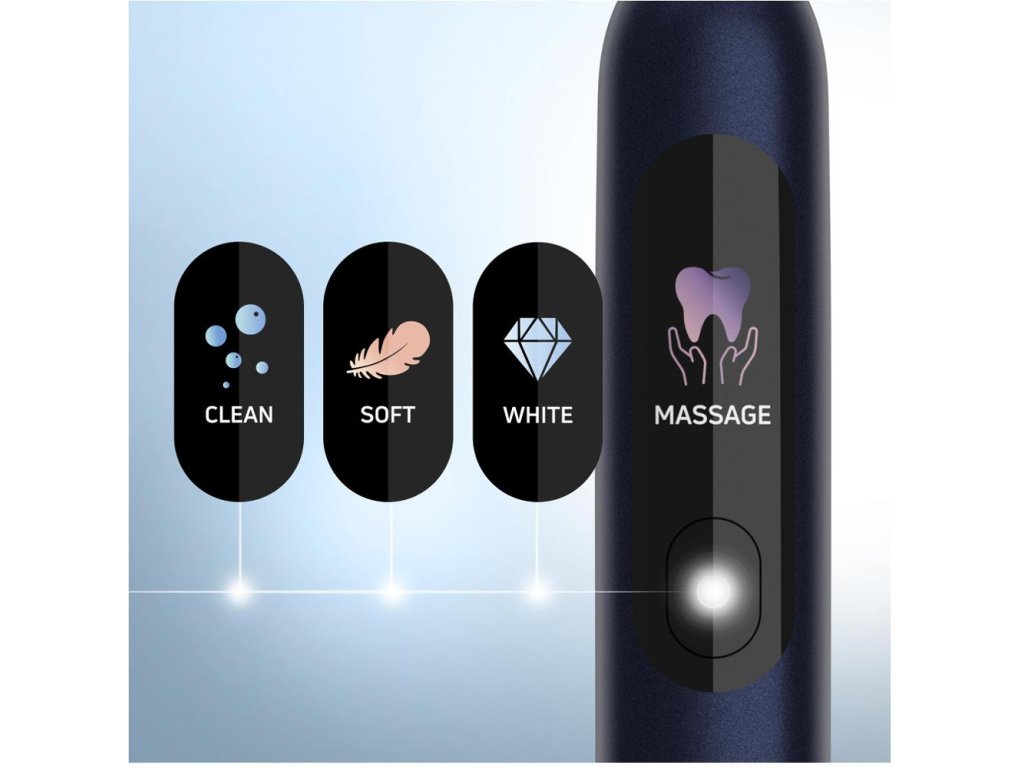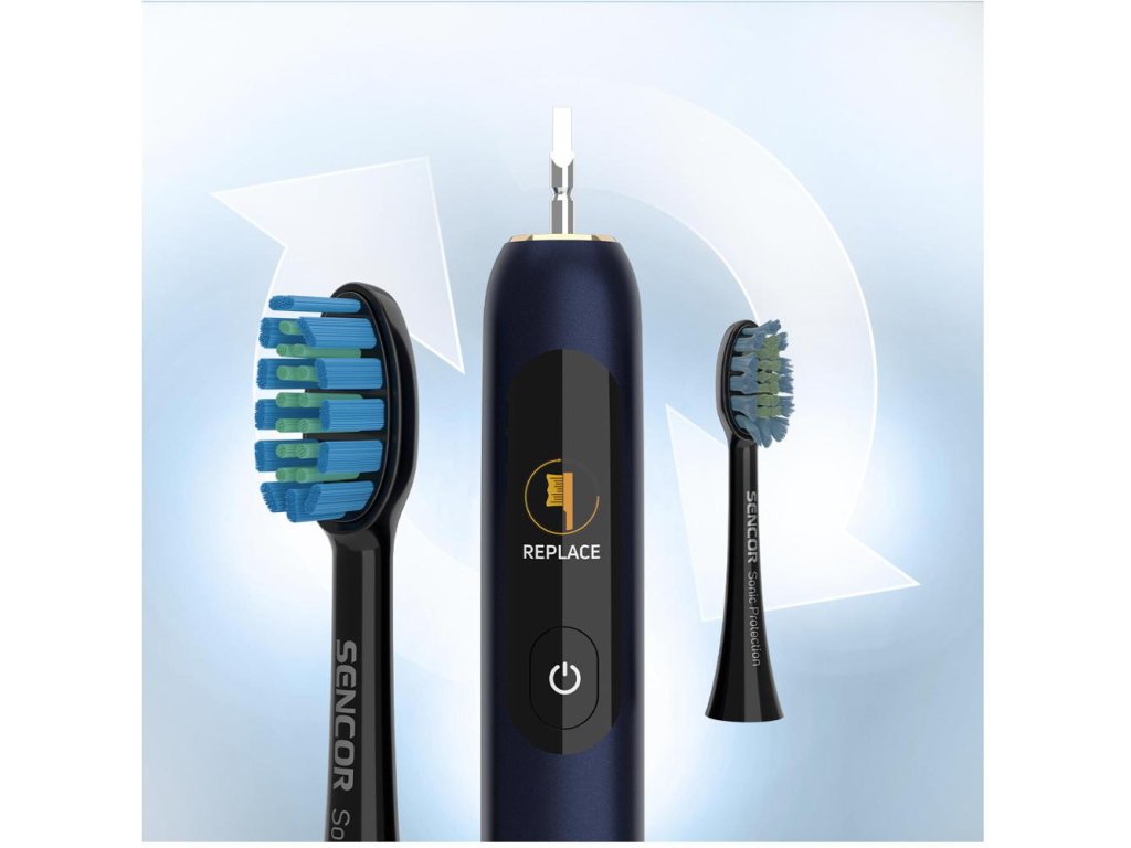 Inteligentný sonický zubný kefka SENCOR SOC 5010BL Digitálny displej so 4 prednastavenými režimami čistenia - CLEAN, SOFT, WHITE, MASSAGE Tlakový senzor chráni citlivé ďasná pred poškodením zubov Indikátor stavu nabitia batérie na displeji Počítadlo času s odporúčaným časom čistenia 2 minúty rozdeluje čistenie do 4 blokov pre čo najlepšie čistenie vďaka technológii Quadpacer Rýchlosť čistenia až 38 000 vibrácií za minútu Výdrž batérie až 30 dní pri každodennom používaní Nabíjanie cez kábel USB-C Dokáže odstrániť zubný povlak niekoľkokrát lepšie ako štandardné čistenie zubov Stará sa o zdravie dásní zabezpečuje pohodlnú manipuláciu Mimoriadne nízka spotreba energie Stupeň vodotesnosti IPX7 (ochrana proti ponoreniu do vody) Obsah balenia: 1 telo zubného kefky 2 hlavice 1 nabíjací kábel USB-C Farba modráDodatočné parametre