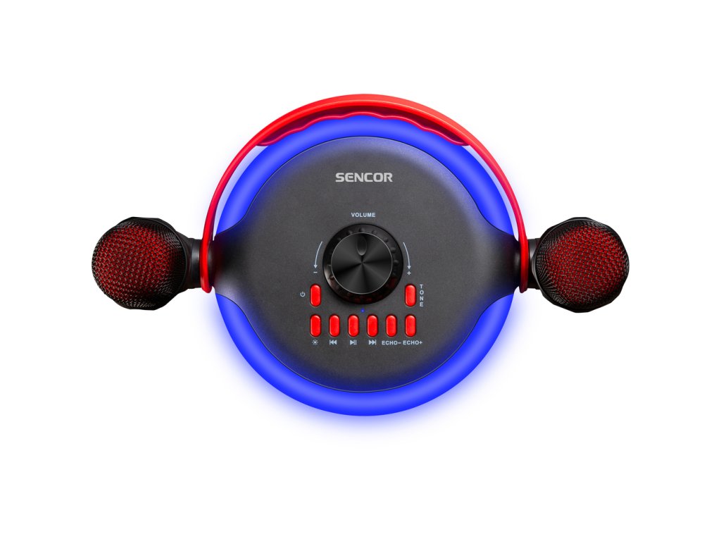 Reproduktor Bluetooth s bezdrátovými mikrofónmi Sencor SSS 3400K Párty reproduktor SSS 3400K prekvapí čistým zvukom a dokonalou svetelnou šou. Balenie obsahuje dva bezdrôtové dobíjacie mikrofóny s funkciou ECHO a dosahom až 10 m. Reproduktor umožňuje počúvať obľúbenú hudbu zo smartfónu alebo tabletu prostredníctvom bezdrôtového pripojenia Bluetooth 5.0. Výkonný zvuk zabezpečujú dva reproduktory s maximálnym výkonom 30 W. Vďaka vstavanej nabíjateľnej batérii s kapacitou 4 000 mAh môžete počúvať hudbu až 9 hodín (pri 50 % hlasitosti). Funkcia Dva bezdrôtové mikrofóny v balení Svetelné efekty s možnosťou vypnutia Maximálny výkon reproduktora 30 W Bezdrôtové mikrofóny Pripojenie Bluetooth V5.2 Dosah až 10 m Vysielacia frekvencia 60 Hz - 13 kHz Nabíjateľná batéria mikrofónu: 1 200 mA nabitie Funkcia ECHO Zvuk: Maximálny výkon reproduktora 30 W 1 širokopásmový + 1 výškový reproduktor Frekvenčná odozva: 30 Hz - 20 kHz Celkové harmonické skreslenie: ? 5 % Vstupy: Bluetooth Audio 5.0 Audio vstup Aux (3,5 mm stereo konektor) Prehrávanie z USB (do 32 GB/MP3) Slot na pamäťovú kartu (až 32 GB/MP3) Koaxiálny vstup Iné: Vstavaný kábel s mikrofónom, ktorý je súčasťou balenia: Dobíjateľná batéria reproduktorov: 9 hodín (pri 50% hlasitosti) Napájanie cez USB-C Príslušenstvo: Nabíjací kábel USB, užívateľská príručka Rozmery: 280 x 273 x 168 mm Hmotnosť: 2 200 gDodatočné parametre