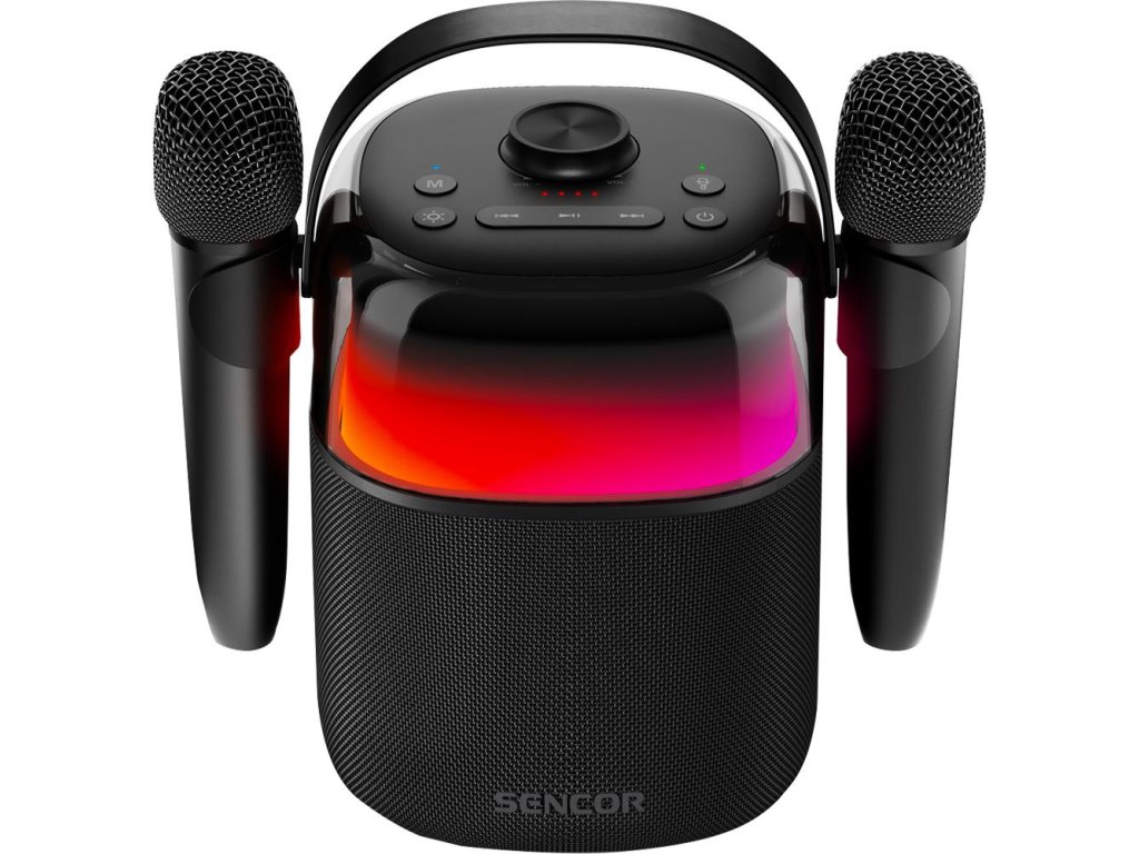 Reproduktor Bluetooth s bezdrôtovými mikrofónmi SENCOR SSS 3450K Dva bezdrôtové mikrofóny v balení Svetelné efekty s možnosťou vypnutia Maximálny výkon reproduktora 35 W Ekvalizér Vodotesnosť IPX5 Bezdrôtové mikrofóny Dosah až 10 m Nabíjateľná batéria mikrofón Prevádzkový čas až 40 hodín pri plnom nabití Funkcia ECHO Zvuk: Maximálny výkon reproduktora 35 W 1 širokopásmový + 1 výškový reproduktor Frekvenčná odozva: 75 Hz-20 kHz Celkové harmonické skreslenie: ? 5 % Vstupy a výstupy: FM rádio Bluetooth Audio 5.3 Audio vstup Aux (3,5 mm stereo konektor) Prehrávanie/nabíjanie cez USB (do 32 GB/MP3) Vstup pre mikrofón (6,3 mm jack) Výstup na sluchátka (3,5 mm jack) Ostatné: Dobíjateľná batéria reproduktora: 8A 10 hodín (pri 50% hlasitosti) Napájanie cez USB-C Príslušenstvo: 2x bezdrôtový mikrofón, 2x držiak mikrofónu, Aux in kábel, nabíjací kábel USB, užívateľská príručka Rozmery: 216 x 171 x 161 mm Hmotnosť: 1 950 gDodatočné parametre