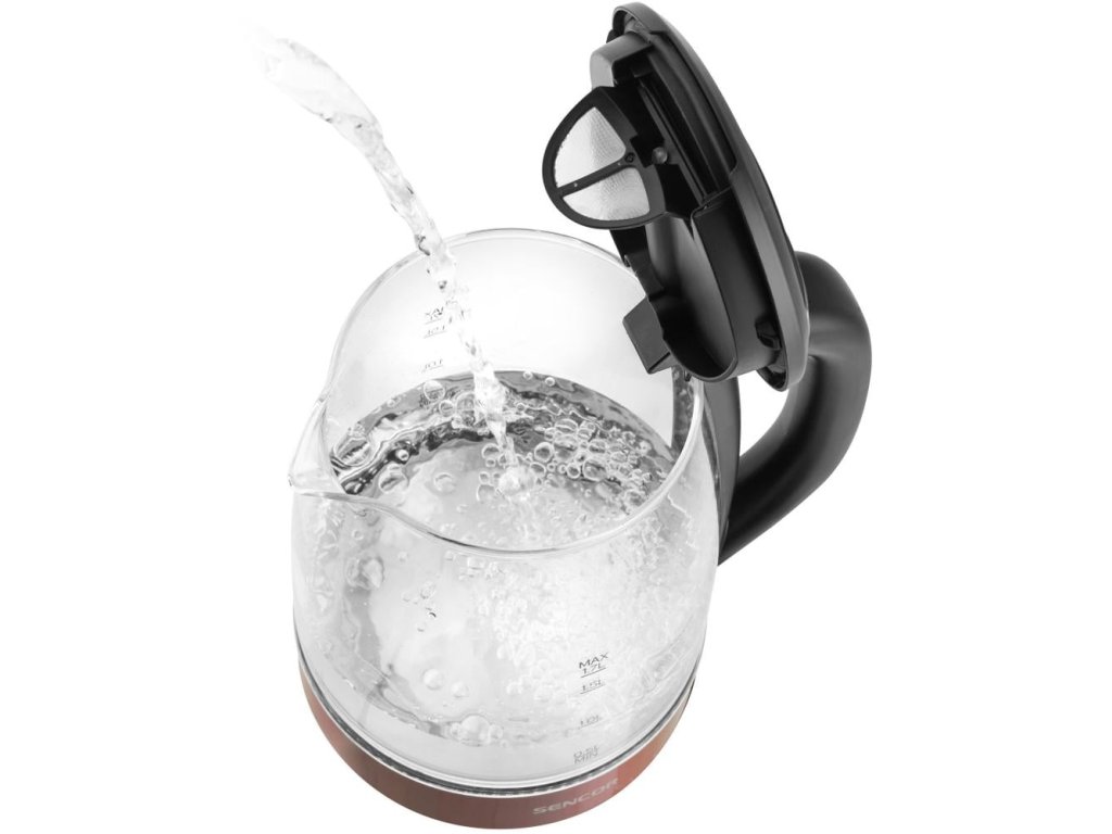 Rýchlovarná kanvica Sencor SWK 7401RD s príkonom 2 200 W je ideálnym spotrebičom do vašej kuchyne. Táto kanvica má maximálny objem 1,7 la je vybavená prehľadnými ukazovateľmi hladiny vody, takže vždy budete presne vedieť, koľko vody sa v spotrebiči nachádza. Telo konvice je vyrobené z borosilikátového skla, ktoré je vysoko odolné voči prudkým zmenám teploty. Okrem toho je spotrebič vybavený vyberateľným filtrom a je určený na jednoduché čistenie. Otváranie konvice je zabezpečené tlačidlom na veku, zatiaľ čo ho základňa umožňuje pohodlné otáčanie o 360 ° a je doplnená ergonomickou rukoväťou s protišmykovou úpravou Objem 1,7 l Rýchly ohrev vody vďaka vysokému príkonu 2200 W Elegantný dizajn Borosilikátové sklo (odolné voči zmenám teploty) prehriatiu pri zapnutí bez vody Automatické vypnutie pri dosiahnutí teploty varu Ergonomicky tvarovaná protišmyková rukoväť Úložný priestor na napájací kábel v základni Tlačidlo na veku zabezpečuje jednoduché otváranie Obojstranný vodoznak Vykurovacia základňa vyrobená z vysokokvalitnej nerezovej ocele SUS 304, ktorá nekoroduje ani pri vysoký Jednoduché čistenie a údržbaDodatočné parametre
