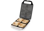 Sendvičovač, trojuholníkové dosky, automatická regulácia teploty, nepriľnavý povrch, tepelne izolovaná rukoväť, svetelné indikátory, jednoduchá údržba, príkon 750 W