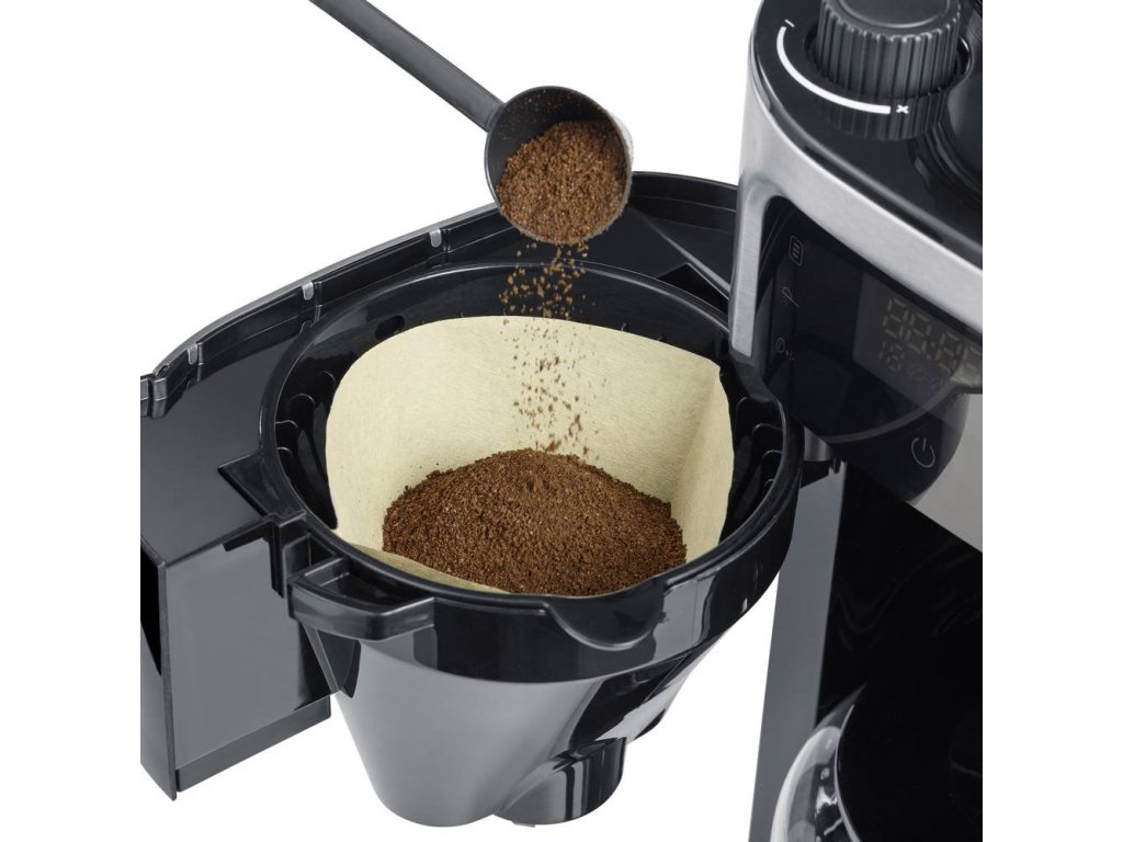 Kávovar s integrovaným mlynčekom Severin KA 4813 Vlastnosti: - Vďaka dokonalej technológii mletia sú jednotlivé možnosti mletia optimálne vyvážené podľa vašej chuti - prináša jedinečnú chuť vďaka unikátnej funkcii naparovania kávy pred prípravou, uvoľňuje a zintenzívňuje arómu - LED displej s funkciou časovača deaktivácia na prípravu prekvapkávanej kávy z predom namletej kávy - výkon: 1000 W - kapacita: 10 šálok / 1,25 l - farba: čierna / brúsená nerezová ocel - Kapacita nádoby na kávové zrná: 200 g - nastaviteľný stupeň mletia a množstvo funkcia: zvukový signál možno vypnúť - "Blooming Function" - funkcia naparovania čerstvo namletej kávy pred jej sparením - vytvára najintenzivnejšiu arómu a najplnšiu chuť - s funkciou deaktivácie mletej kávy na prípravu prekvapkávanej kávy z predom namletej kávy, - výsuvný fil a prídavným permanentným filtrom - nastaviteľná funkcia ohrevu až na 60 minút - funkcia automatického vypnutia - rozmery: 488 x 370 x 264 mm - hmotnosť: 6,205 kgDodatočné parametre