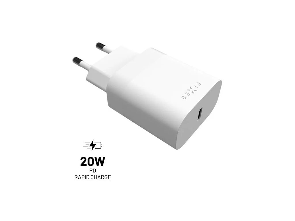 Sieťová nabíjačka FIXED s výstupom USB-C a podporou PD, 20 W, biela