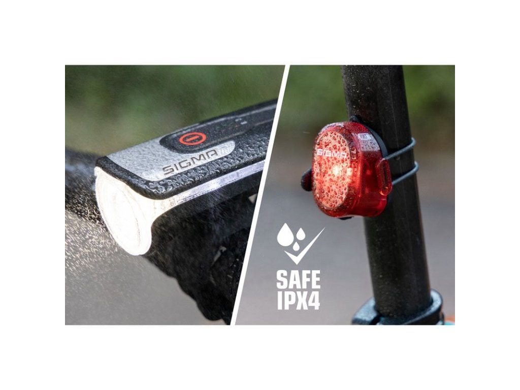 SIGMA AURA 80 USB + NUGGET II. Predné svetlo AURA 80 USB: Výkonné svetlo, ktoré splňuje vysoké nároky Dosvit 90 m vrchného svetla Aura 80 USB so svietivosťou 80 luxov uspokojí každého ambiciózneho cyklistu. Presné LED indikátory na hornej strane svetla indikujú zostávajúcu kapacitu batérie a taktiež vás informujú o tom, ktorý zo štyri režimov svietenia sa práve používa. Bočné lišty nie sú len dizajnovým prvkom, ale zabezpečujú aj vynikajúcu viditeľnosť cyklistu pre ostatných účastníkov cestného premávky. Funkcia svetla Intenzita svetla: 80 lx Dosah: 90 m Osram LED Doba svietenia: 4 h štandardná / 5 h stredná / 6,5 h nízka / 15 h úsporná Čas nabíjania: 4,5 h Indikátor stavu batérie a nabíjania - 5 úrovní Zobrazenie režimu Ochrana proti neúmyslu držiak Instalácia bez použitia náradia Integrované nabíjanie pomocou microUSB Nabíjanie aj počas svietenia Bočná viditeľnosť Horizontálne a vertikálne nastaviteľný držiak Vodotesná ochrana IPX4 proti striekajúcej vode Hmotnosť: 119 g (vrátane držiaka) 80 luxov Aura 80 USB osvetlenia 80 luxov v 4 zónach - stred, bočné, vzdialené a blízke. To zaručuje vynikajúcu viditeľnosť a väčšiu bezpečnosť na cestách. 4 režimy svietenia Vďaka štyrom režimom možno optimálne nastaviť intenzitu osvetlenia: štandardné 80 luxov / stredné 60 luxov / nízke 40 luxov / úsporné 20 luxov. Doba svietenia až 15 hodín Svetlo Aura 80 USB dokáže v úspornom režime svietiť až 15 hodín na jedno nabitie. Trvanie svietenia podľa zvolených režimov: 4 h štandardný / 5 h stredný / 6,5 h nízky / 15 h úsporný. Pomocou štyroch režimov svietenia sa môžete sami rozhodnúť, koľko svetla chcete použiť a ako dlho chcete jazdiť. Pri najvyššej úrovni 80 luxov vydrží batéria svetla až štyri hodiny. Ak jazdíte za súmraku alebo na dobre osvetlených uliciach, môžete použiť úsporný režim, ktorý poskytuje dostatočné osvetlenie až na 15 hodín. Informácie na displeji - indikátor stavu batérie a nabíjania + zobrazenie režimu svietenia Aura 80 USB s viacúrovňovými indikátormi kapacity batérie a svetelného režimu. Štyri žlté LED diódy zobrazujú aktuálny režim osvetlenia. Zelené LED diódy poskytujú presné informácie o aktuálnej úrovni nabitia. Svetlo je možné nabíjať aj počas svietenia. Osram Led Aura 80 USB je vybavená diódami Osram LED. V kombinácii s vysoko výkonnou optikou vytvára veľmi rovnomerné rozloženie svetla vo všetkých svetelných zónach. Bočná viditeľnosť Svetelné pásy s LED diódami na oboch stranách svetla poskytujú jazdcovi vynikajúcu bočnú viditeľnosť. Dosahuje sa tak maximálna viditeľnosť v cestnej premávke. Nabíjanie batérie Aura 80 USB má integrovanú bateriu, ktorá sa nabíja pomocou kábla microUSB. Dodaný kábel microUSB umožňuje úplné nabitie svetla za 4,5 hodiny. Litium-iónová batéria má ochranu proti hlbokému vybitiu a prebitiu, nemá pamäťový efekt a dá sa ľahko úplne dobiť. Ochrana proti neúmyselnému zapnutiu/vypnutiu Svetlo na kolo sa zapína dvojitým kliknutím a vypína dlhým stlačením tlačidla. Táto funkcia zabraňuje neúmyselnému zapnutiu/vypnutiu napr. v batohu, v kapse. Držiak svetla Svetlo Aura 80 USB sa pripevňuje na riadidlá pomocou silikónového držiaka, ktorý sa dá otáčať až o 360 °. Konštrukcia umožňuje rýchle pripevnenie alebo odstránenie bez použitia náradia. Svetlo sa ľahko pripevní na akýkoľvek tvar a priemer riadidiel. Vodotesnosť Aura 80 USB je vodotesné v súlade s medzinárodnou normou IPX4, čo znamená "ochrana proti striekajúcej vode zo všetkých strán". Je preto vhodné na používanie bez ohledu na nepříznivé počasie. Kompaktný a ľahký Parametre - dĺžka: 94,2 mm / výška: 39,6 mm / šírka: 44,9 mm / hmotnosť: 119 g (vrátane držiaka) + NUGGET II.: Na každodenné použitie Vynikajúci pomer cena/výkon. Nugget II. má moderný a kompaktný tvar s nízkou hmotnosťou 24 g. Používa 0,5 W vysoko výkonnú LED diódu, tvarovanie Fresnelovho prstenca, integrovanú lithium-iónovú bateriu s nabíjaním cez microUSB, indikátor stavu batérie a viditeľnosť 400 metrov pri uhle 220 °. Funkcia svetla Viditeľnosť: 400 m Režimy svietenia: trvalé svetlo Uhol svietenia 220° Doba svietenia: 5 h Čas nabíjania: 2 h Indikátor stavu batérie a nabíjania Integrovaná lithium-iónová batéria Horizontálne nastaviteľný držiak Inštalácia pomocou použitia IPX4 proti striekajúcej vode Hmotnosť: 24 g Výkonná optika Použitá 0,5 W vysoko výkonná LED dióda poskytuje veľmi jasné svetlo a dosahuje vynikajúcu viditeľnosť až do vzdialenosti 400 metrov. Fresnelove (prstencové plastové) čočky, ktoré boli navrhnuté špeciálne pre model Nugget II, rovnomerne rozdelujú svetlo a maximalizujú viditeľnosť. Bočná viditeľnosť Bočná viditeľnosť presahuje uhol svietenia 220 °, čo mimořádne zvyšuje bezpečnosť na cestách. Až 5 hodín svietenia Nugget II dokáže svietiť až 5 hodín na jedno nabitie. Integrovaná lithium-iónová batéria nabíjateľná cezUSB Svetlo a batéria sú spojené do jedného celku. Lítium-iónovú bateriu možno dobíjať pomocou kábla microUSB. Nabíjanie batérie Batériu možno nabíjať buď z počítača pomocou dodaného kábla microUSB, alebo priamo z elektrickej siete. Čas nabíjania približne 2 hodiny. Nabíjací port na dobíjanie je dobre zakrytý v spodnej časti svetla a je tak chránený pred prachom a striekajúcou vodou. Indikátor stavu batérie a nabíjania Indikátor stavu batérie zobrazuje stav batérie pri nabíjaní aj pri rozsvietení. Pomocou dvoch ikon v hornej časti svetla môžete vidieť stav batérie a stav nabitia. Fresnelova čočka Čočka špeciálne vyvinutá pre svetlo Nugget II. Vďaka kruhovej struktúre vytvára vynikajúce rozloženie svetla na veľmi malom priestore. Oválny diz