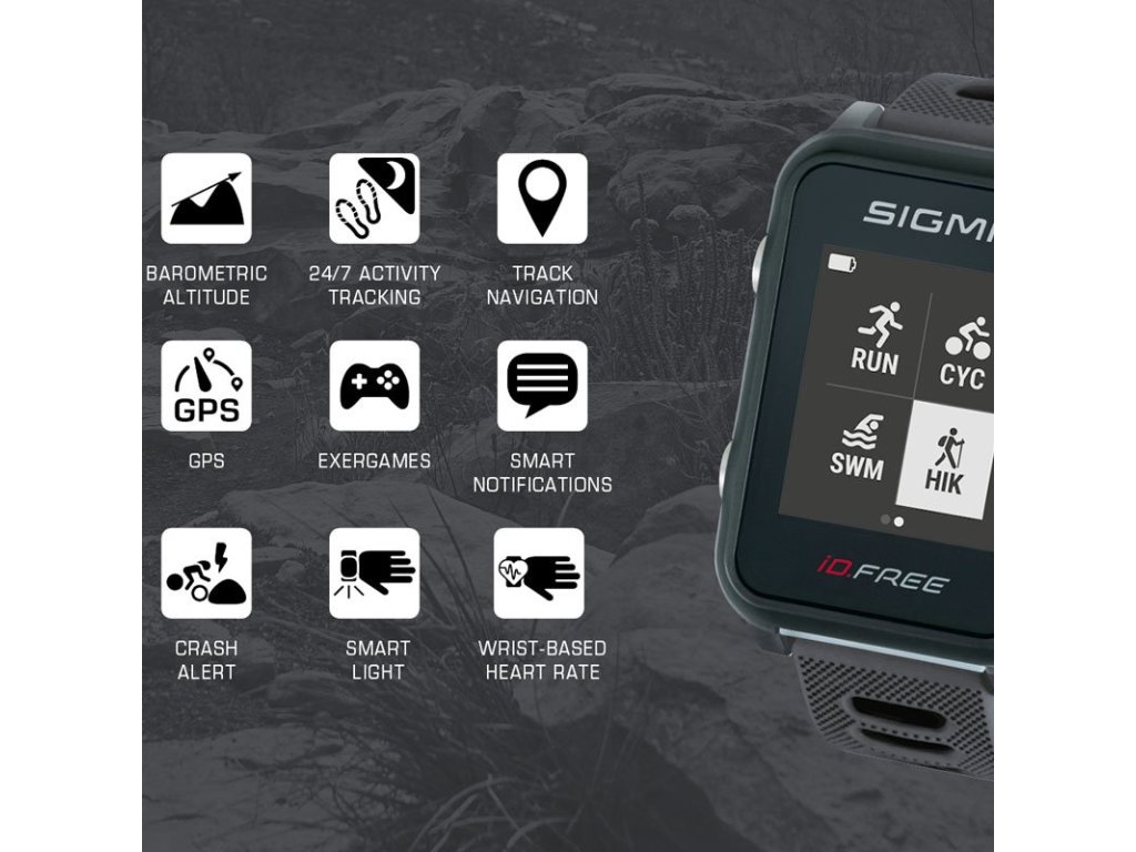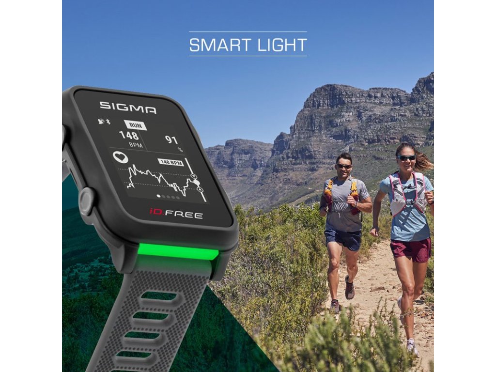 Sigma iD.FREE Multišportové hodinky pre outdoorových športovcov a dobrodruhov iD.FREE je možné využiť v mnohých športoch ako mnohostranné multišportové hodinky. Presvedčí svojím jednoduchým, štíhlym dizajnom, intuitívnym ovládaním a konektivitou cez Bluetooth a ANT+. Vďaka tomu je možné hodinky prepojiť nielen so smartfónom, ale aj s externými senzormi (tepové frekvencie, rýchlosti, kadencie, výkonu). Okrem toho ponúkajú aj USB rozhranie pre rýchlu komunikáciu s počítačom. Ponúkajú možnosť konfigurácie tréningových náhľadov, ale aj profesionálne vyhodnotenie a analýzu dát prostredníctvom bezplatného softvéru SIGMA v podobe aplikácií DATA CENTER a LINK. Športové hodinky ponúkajú kvalitné pohodlné silikónové náramky v štyroch rôznych farbách, ktoré je možné medzi sebou meniť jednoduchým zacvaknutím. Okrem toho k nim je možné pripevniť ľubovoľný 20mm hodinkový náramok. Vďaka kvalitne spracovaným materiálom a vodotesnosti 5 ATM sú hodinky robustné a odolné proti poveternostným vplyvom, vhodné na plávanie. Váži iba 42 gramov. Jednoduchá štruktúra menu, vibračný alarm, vizuálny (svetelný) alarm a štyri tlačidlá zaisťujú jednoduchú obsluhu v každej situácii. Hodinky ponúkajú špeciálne funkcie, ktoré obohatia športový zážitok používateľa. Funkcia SmartLight v spodnej časti puzdra zdokonaľuje inovatívnym spôsobom tréningový zážitok tým, že prostredníctvom rôzne farebných svetelných signálov podporuje tréning cieľovej zóny a taktiež zobrazuje upozornenia na odbočenie spolu s upozorneniami Smart Notifications. Funkcia Crash Alert zaisťuje väčšiu bezpečnosť pri tréningu. Prostredníctvom funkcie Crash Alert rozpoznajú hodinky automaticky pád av prípade, že používateľ do 30 sekúnd nezareaguje, informujú záchranné zložky pomocou uložených čísel správou SMS. Na tento účel musia byť hodinky prepojené s aplikáciou SIGMA LINK. Športové hodinky navyše záchranárom zobrazia tie najdôležitejšie údaje o zdravotnom stave a aktuálnu GPS polohu. Pre triatlonistov a cyklistov je obzvlášť praktický držiak na riadidlá SnapOn Bike Mount. Umožňuje namontovať hodinky ľahko a rýchlo na riadidlá aj v priebehu závodu, vďaka tomu má pretekár počas jazdy k dispozícii všetky dôležité hodnoty. Aby používateľ vždy dorazil do cieľa, ponúkajú hodinky navigáciu prostredníctvom trasovej navigácie a populárnej aplikácie pre peších a cyklistické trasy komoot. Trasy je možné načítať cez Sigma DATA CENTER alebo pomocou aplikácie Sigma LINK do športových hodiniek. V rámci navigácie prostredníctvom aplikácie komoot sa zobrazujú upozornenia na odbočenie priamo na displeji hodiniek. Smartphone tak môže zostať vo vrecku. Hodinky sú vybavené najmodernejšou technikou a ponúkajú presné a rozsiahle merané hodnoty. Ponúka GPS meranie, trojosový kompas, čidlo zrýchlenia a barometrické meranie výšky. Na účely merania tepu sú hodinky vybavené kvalitným PPG senzorom, ktoré meria tepovú frekvenciu pohodlne zo zápästia. Prípadne je možné na dosiahnutie presnosti porovnateľnej s EKG pripojiť aj hrudný pás. Okrem toho nie sú hodinky len spoľahlivým partnerom pre športové aktivity, ale vďaka funkcii záznam aktivít a analýze spánku spoľahlivo slúžia aj v dňoch bez tréningu. Športovec má tak kedykoľvek k dispozícii informácie o svojej regenerácii. Funkcia tepovej frekvencie Tepová frekvencia Priemerná tepová frekvencia Maximálna tepová frekvencia % maximálna tepová frekvencia Kalórie Indikátor zón % tréningového času v jednotlivých zónach Čas v cieľovej zóne Cieľová zóna s indikátorom zón Alarm zón Prednastavené frenvencii Priemerná tepová frekvencia na okruh Maximálna tepová frekvencia na okruh Kalórie na okruh Rýchlosť/vzdialenosť Aktuálna rýchlosť Priemerná rýchlosť Priemerná rýchlosť na okruh Celkové kilometre Maximálna rýchlosť Dĺžka okruhu Funkcia navigácie Navigácia po trase Komoot navigácia Funkcia Geocaching Prednačítanie Tréningový čas Aktuálny čas okruhu Čas posledného okruhu Budík Funkcia krokomeru Sledovanie aktivít - vzdialenosť Sledovanie aktivít - kalórie Sledovanie aktivít - kroky Definované priebežné ciele (bronz, striebro, zlato) Individuálny denný cieľ (kroky) Analýza spánku Sledovanie kvality spánku Sledovanie jednotlivých fáz spánku Exercise Slalom tepovej frekvencie Rýchlosť regenerácie Funkcia pre beh Aktuálnych frekvencia krokov Priemerná frekvencia krokov Frekvencia krokov Aktuálna dĺžka kroku Funkcia bicykla Kadencia (je nutný kompatibilný snímač) Meranie výkonu/watov (je nutný kompatibilný snímač) Funkcia plávania Rozpozná Funkcia lyžovania Počet výjazdov a zjazdov Konektivita Kompatibilný s aplikáciou SIGMA LINK cez Bluetooth Kompatibilný s aplikáciou DATA CENTER cez USB Smart notifikácie Zasielanie informácií o núdzovej situácii Vlastnosti zariadenia Meranie tepovej frekvencie s EKG presnosťou (je nutný kompatibilný snímač) Výpočet maximálnej tepovej frekvencie Displej krytý minerálnym sklom Mesačný tréninková štatistika Osobné rekordy Meranie tepu zo zápästia Počítadlo okruhov Silikónový remienok (užívateľsky vymeniteľný) 7 prednastavených športových profilov Zámok tlačidiel Nastaviteľné tréningové náhľady Vibračný alarm Plné zobrazenie textu v jazykoch: GB-DE-FR-ES-IT-NL-CZ light (vizuálny alarm zón a rôzne upozornenia) Barometrické meranie výšky ANT+ GPS Bluetooth Smart Digitálny 3-osý kompas Vodeodolnosť 5ATM Obsah balenia iD.FREE Držiak na bicykel SnapOn Bike Mount Nabíjací kábel Voucher navigácia komoot región Voucher Geocaching Premium na 30 dní a cyklistov je obzvlášť praktický priložený držiak na riadidlá SnapOn Bike Mount. Umožňuje namontovať hodinky ľahko a rých