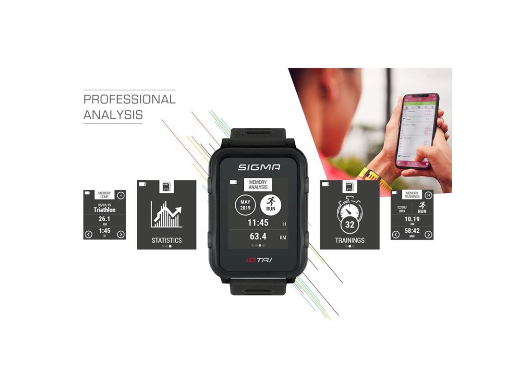 Je triatlon vaša vášeň? Potom potrebujete iD.TRI! S modelom iD.TRI ponúka SIGMA triatlonistom inovatívne športové hodinky pre tréning aj preteky. Jednoduché, intuitívne ovládanie, ako aj chytré funkcie a špeciálne príslušenstvo urobia radosť nielen začiatočníkom, ale aj skúseným triatlonistom. Vďaka Bluetooth, ANT+ a USB rozhraniu je možné hodinky iD.TRI prepojiť so smartfónom, počítačom aj externými snímačmi. Okrem toho nie sú hodinky iD.TRI len spoľahlivým partnerom pre triatlon, ale vďaka funkcii záznamu aktivít a analýze spánku sú vhodné aj na každodenné použitie. Premyslený tréningový systém hodiniek iD.TRI meria vďaka špeciálnym algoritmom v jednotlivých disciplínach všetky hodnoty, ktoré sú pre triatlonistov relevantné. Nastavenie a tréningové náhľady športových profilov je možné na hodinkách individuálne upravovať. Rovnako cielene je možné na základe rôznych parametrov nastavovať cieľové zóny a tréningy, ktoré je možné vyhodnocovať a analyzovať pomocou softvérových nástrojov SIGMA. Aby sa triatlonisti mohli optimálne pripraviť na preteky a absolvovali ich bez stresu, ponúkajú hodinky iD.TRI závodný režim. V plánovači pretekov je tak možné ľubovoľne voliť poradie a vzdialenosť disciplín tak, aby bolo možné okrem bežných vzdialeností vytvárať aj ďalšie preteky, ako sú napr. duatlony. Počas pretekov hodinky merajú aj celkový čas prechodu medzi jednotlivými disciplínami. Okrem toho si triatlonisti môžu nastaviť upozornenie na doplnenie energie a tekutín po uplynutí stanoveného času alebo vzdialenosti. Jednoduchá štruktúra menu a ovládanie pomocou štyroch tlačidiel sú zárukou ľahkého ovládania hodiniek iD.TRI. Vzhľadom k tenkej a ľahkej konštrukcii je možné hodinky iD.TRI nosiť pod každým neoprénovým oblekom a vďaka vodotesnosti do 5 ATM sa optimálne hodia na plávanie. Tieto triatlonové GPS hodinky navyše zaujmú prvotriednymi materiálmi, z ktorých sú vyrobené, a vymeniteľnými remienkami zo silikónu. Hodinky sú vybavené najmodernejšou technikou a ponúkajú presné a rozsiahle merané hodnoty. Ponúka GPS meranie, trojosový kompas, čidlo zrýchlenia a barometrické meranie výšky. Na účely merania tepu sú hodinky vybavené kvalitným PPG senzorom, ktoré meria tepovú frekvenciu pohodlne zo zápästia. Prípadne je možné na dosiahnutie presnosti porovnateľnej s EKG pripojiť aj hrudný pás. Pre triatlonistov je obzvlášť praktický šikovný držiak na riadidlá Snap On Bike Mount. Umožňuje ľahko a rýchlo pripevniť hodinky iD.TRI na riadidlá aj v priebehu závodu, vďaka čomu má pretekár počas jazdy prehľad o všetkých dôležitých hodnotách. Hodinky iD.TRI sa vďaka jedinečným funkciám postarajú o mimoriadny športový zážitok. Funkcia Smart Light zjednodušuje inovatívnym spôsobom tréningový zážitok triatlonistov tým, že svetelnými signálmi podporuje tréning v cieľovej zóne a zobrazuje pokyny na odbočovanie a múdra upozornenie Smart Notifications. Funkcia Crash Alert prispieva k bezpečnosti počas tréningu tým, že pri rozpoznanom páde odošle SMS správu na uvedený kontakt pre núdzové situácie. Aby používateľ vždy dorazil do cieľa, ponúkajú hodinky iD.TRI navigáciu prostredníctvom trasovej navigácie a populárnej aplikácie pre peších a cyklistické trasy komoot. Trasy je možné do GPS triatlonových hodiniek načítať cez Sigma DATA CENTER alebo pomocou aplikácie Sigma LINK. V rámci navigácie prostredníctvom aplikácie komoot sa zobrazujú upozornenia na odbočenie priamo na displeji hodiniek, a smartphone tak môže zostať vo vrecku. Vďaka USB rozhraniu a Bluetooth komunikujú hodinky iD.TRI s PC a chytrým telefónom. Pre konfiguráciu tréningových náhľadov, ako aj profesionálne vyhodnocovanie a analýzu dát je triatlonistom k dispozícii dátové centrum Sigma DATA CENTER a aplikácia Sigma LINK. Obsah balenia iD.TRI Držiak na bicykel SnapOn Bike Mount Nabíjací kábel Voucher navigácia komoot región Funkcia tepovej frekvencie Tepová frekvencia Priemerná tepová frekvencia Maximálna tepová frekvencia % maximálna tepovej frekvencie Cyklová zóna zóna s indikátorom zón Alarm zón Prednastavené tréningové zóny Rýchly prístup k aktuání tepovej frenvencii Priemerná tepová frekvencia na okruh Maximálna tepová frekvencia na okruh Kalórie na okruh Rýchlosť/vzdialenosť Aktuálna rýchlosť Priemerná rýchlosť Priemerná rýchlosť Priemerná rýchlosť na okruh trase Komoot navigácia Funkcia Geocaching Prednačítanie satelitných dát pre rýchly štart tréningu Funkcia času Hodiny Dátum Tréningový čas Aktuálny čas okruhu Čas posledného okruhu Budík Funkcia krokomeru Sledovanie aktivít - vzdialenosť Sledovanie aktivít - kalória Sledovanie aktivít - kroky Definované priebežné ciele (bronz, ) Sledovanie kvality spánku Sledovanie jednotlivých fáz spánku Funkcia pre beh Aktuálnych frekvencií krokov Priemerná frekvencia krokov Frekvencia krokov Aktuálna dĺžka kroku Funkcia bicykla Kadencia (je nutný kompatibilný snímač) Meranie výkonu/watov (je nutný kompatibilný snímač) Funkcia plávania Rozpoznanie plaveckého štýluočet temp (záberov) na bazén Funkcia lyžovania Počet výjazdov a zjazdov Konektivita Kompatibilný s aplikáciou SIGMA LINK cez Bluetooth Kompatibilný s aplikáciou DATA CENTER cez USB Smart notifikácie Zasielanie informácií o núdzovej situácii Vlastnosti zariadenia Meranie tepovej frekvencie s EKG presnosťou (je nutný kompatibilný snímač Automatický stop Podsvietenie displeja Displej krytý minerálnym sklom Mesačná tréningová štatistika Osobné rekordy Meranie tepu zo zápästia Počítadlo okruhov Silikónový remienok (užívateľsky vymeniteľný) 4 prednastavené športové profily Zámok tlačidiel Nastaviteľné tréningové náhľady GB-