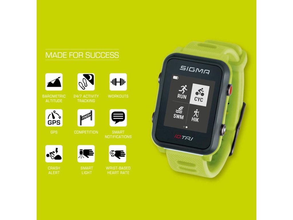 Sigma iD.TRI Set Je triatlon vaša vášeň? Potom potrebujete iD.TRI! S modelom iD.TRI ponúka SIGMA triatlonistom inovatívne športové hodinky pre tréning aj preteky. Jednoduché, intuitívne ovládanie, ako aj chytré funkcie a špeciálne príslušenstvo urobia radosť nielen začiatočníkom, ale aj skúseným triatlonistom. Vďaka Bluetooth, ANT+ a USB rozhraniu je možné hodinky iD.TRI prepojiť so smartfónom, počítačom aj externými snímačmi. Okrem toho nie sú hodinky iD.TRI len spoľahlivým partnerom pre triatlon, ale vďaka funkcii záznamu aktivít a analýze spánku sú vhodné aj na každodenné použitie. Premyslený tréningový systém hodiniek iD.TRI meria vďaka špeciálnym algoritmom v jednotlivých disciplínach všetky hodnoty, ktoré sú pre triatlonistov relevantné. Nastavenie a tréningové náhľady športových profilov je možné na hodinkách individuálne upravovať. Rovnako cielene je možné na základe rôznych parametrov nastavovať cieľové zóny a tréningy, ktoré je možné vyhodnocovať a analyzovať pomocou softvérových nástrojov SIGMA. Aby sa triatlonisti mohli optimálne pripraviť na preteky a absolvovali ich bez stresu, ponúkajú hodinky iD.TRI závodný režim. V plánovači pretekov je tak možné ľubovoľne voliť poradie a vzdialenosť disciplín tak, aby bolo možné okrem bežných vzdialeností vytvárať aj ďalšie preteky, ako sú napr. duatlony. Počas pretekov hodinky merajú aj celkový čas prechodu medzi jednotlivými disciplínami. Okrem toho si triatlonisti môžu nastaviť upozornenie na doplnenie energie a tekutín po uplynutí stanoveného času alebo vzdialenosti. Jednoduchá štruktúra menu a ovládanie pomocou štyroch tlačidiel sú zárukou ľahkého ovládania hodiniek iD.TRI. Vzhľadom k tenkej a ľahkej konštrukcii je možné hodinky iD.TRI nosiť pod každým neoprénovým oblekom a vďaka vodotesnosti do 5 ATM sa optimálne hodia na plávanie. Tieto triatlonové GPS hodinky navyše zaujmú prvotriednymi materiálmi, z ktorých sú vyrobené, a vymeniteľnými remienkami zo silikónu. Hodinky sú vybavené najmodernejšou technikou a ponúkajú presné a rozsiahle merané hodnoty. Ponúka GPS meranie, trojosový kompas, čidlo zrýchlenia a barometrické meranie výšky. Na účely merania tepu sú hodinky vybavené kvalitným PPG senzorom, ktoré meria tepovú frekvenciu pohodlne zo zápästia. Prípadne je možné na dosiahnutie presnosti porovnateľnej s EKG pripojiť aj hrudný pás. Pre triatlonistov je obzvlášť praktický šikovný držiak na riadidlá Snap On Bike Mount. Umožňuje ľahko a rýchlo pripevniť hodinky iD.TRI na riadidlá aj v priebehu závodu, vďaka čomu má pretekár počas jazdy prehľad o všetkých dôležitých hodnotách. Hodinky iD.TRI sa vďaka jedinečným funkciám postarajú o mimoriadny športový zážitok. Funkcia Smart Light zjednodušuje inovatívnym spôsobom tréningový zážitok triatlonistov tým, že svetelnými signálmi podporuje tréning v cieľovej zóne a zobrazuje pokyny na odbočovanie a múdra upozornenie Smart Notifications. Funkcia Crash Alert prispieva k bezpečnosti počas tréningu tým, že pri rozpoznanom páde odošle SMS správu na uvedený kontakt pre núdzové situácie. Aby používateľ vždy dorazil do cieľa, ponúkajú hodinky iD.TRI navigáciu prostredníctvom trasovej navigácie a populárnej aplikácie pre peších a cyklistické trasy komoot. Trasy je možné do GPS triatlonových hodiniek načítať cez Sigma DATA CENTER alebo pomocou aplikácie Sigma LINK. V rámci navigácie prostredníctvom aplikácie komoot sa zobrazujú upozornenia na odbočenie priamo na displeji hodiniek, a smartphone tak môže zostať vo vrecku. Vďaka USB rozhraniu a Bluetooth komunikujú hodinky iD.TRI s PC a chytrým telefónom. Pre konfiguráciu tréningových náhľadov, ako aj profesionálne vyhodnocovanie a analýzu dát je triatlonistom k dispozícii dátové centrum Sigma DATA CENTER a aplikácia Sigma LINK. Obsah balenia iD.TRI Vysielač rýchlosti a kadencie R2 Duo Combo Vysielač tepovej frekvencie R1 Duo Comfortex+ Držiak na bicykel SnapOn Bike Mount Nabíjací kábel Voucher navigácia komoot región Funkcia tepovej frekvencie Tepová frekvencia Maximálna tepová Priemerná tepová maximálna tepová frekvencia Kalórie Indikátor zón % tréningového času v jednotlivých zónach Čas v cieľovej zóne Cieľová zóna s indikátorom zón Alarm zón Prednastavené tréningové zóny Rýchly prístup k aktuaniu tepovej frekvencie Priemerná tepová frekvencia na okruh Maximálna tepová frekvencia na okruh Rýchlosť/vzdialenosť Aktuálna rýchlosť Priemerná rýchlosť Priemerná rýchlosť na okruh Celkové kilometre Maximálna rýchlosť Dĺžka okruhu Funkcia navigácie Navigácia po trase Komoot navigácia Funkcia Geocaching Prednačítanie satelitných dát pre rýchly štart tréningu Funkcia času Hodiny Dátum Tréningový čas Aktuálny čas okruhu Bud posledného okruhu kalórie Sledovanie aktivít - kroky Definované priebežné ciele (bronz, striebro, zlato) Individuálny denný cieľ (kroky) Analýza spánku Sledovanie kvality spánku Sledovanie jednotlivých fáz spánku Funkcia pre beh Aktuálnych frekvencií krokov Priemerná frekvencia krokov Frekvencia krokov Aktuálna dĺžka kroku Funkcia jazdnéhoozpoznanie plaveckého štýlu Počet bazénov Počet temp (záberov) na bazén Funkcia lyžovania Počet výjazdov a zjazdov Konektivita Kompatibilný s aplikáciou SIGMA LINK cez Bluetooth Kompatibilný s aplikáciou DATA CENTER cez USB Smart notifikácie Zasielanie informácií o núdzovej situácii Vlastnosti zariadenia Meranie tepovej frekvencie s maximálnou frekvenciou okruhu Automatický stop Podsvietenie displeja Displej krytý minerálnym sklom Mesačná tréningová štatistika Osobné rekordy Meranie tepu zo zápästia Počítadlo okruhov Silikónový remienok (užívateľsky vymeniteľný) 4 predna