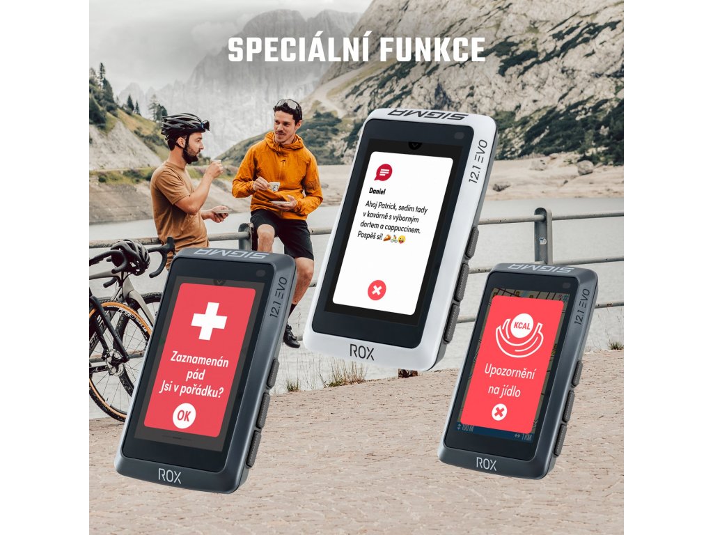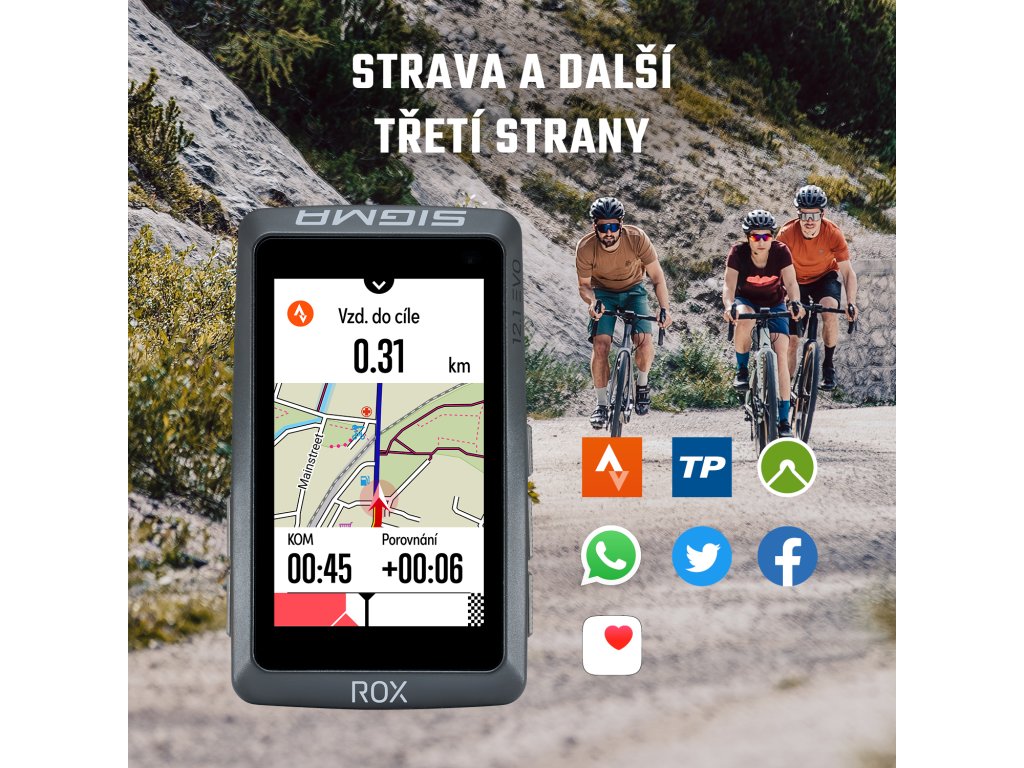 VLASTNOSTI A FUNKCIE VŠEOBECNE Rozmery: 57 x 95 x 21 mm Hmotnosť: 110 g Vodeodolnosť: IP67 Batéria: 2400 mAh Dotyková obrazovka Veľkosť displeja: 3" Rozlíšenie displeja: 240 x 400 pixel Farebný displej Počet farieb: 16 14 hodín (závisí na používaní a okolitých podmienkach) Konektivita: Bluetooth, ANT+, WiFi Smart notifikácia Fulltextové zobrazenie Jazyky: 8 (SK, EN, DE, ES, FR, IT, NL, PL) Pripravený pre E-bike SENSORY (možnosť pripojenia) Rýchlosť Kadencia Tepový trenažér (FE-C) Radar Remote Rotor Powermeter (OCA/OCP) NAVIGÁCIA Mapová navigácia Trasová navigácia Pokyny pre odbočenie Počet trás na zariadení: až 100 Späť na štart Po rovnakej trase späť Zadanie adresy Vyhľadanie POI Zadanie súradníc Funkcia Draw my Route pre rýchle vytváranie trás Vytvorenie trasy s viacerými postupmi položiek navigácie ČIDLÁ GPS GLONASS GALILEO Barometrické meranie výšky Snímač okolitého svetla Snímač zrýchlenia TRÉNING Predinštalované športové profily: 6 Individuálne nastaviteľné športové profily: až 20 Individuálne nastaviteľné tréningové stránky: až 6 Individuálne nastaviteľný počet tréningových hodnôt pre zvýraznenie tréningových hodnôt: 8 Počet tréningov na zariadení: až 100 Strava Live segmenty Crash Alert Alarmy: jedlo, pitie, individuálna Automatická prestávka Funkcia okruhov: manuálne, automaticky podľa času alebo vzdialenosti Tréning podľa cieľových zón: rýchlosť, kadencie, tepová frekvencia, DIGITÁCIA pamäte Dátový formát: .fit Zdieľanie cez aplikáciu RIDE: Strava, komoot, TrainingPeaks, Facebook, Twitter, WhatsApp, Apple Health TRÉNINGOVÉ FUNKCIE ZÁKLADNÉ FUNKCIE Rýchlosť / priemerná rýchlosť / maximálna rýchlosť Vzdialenosť Tréningový čas (čistý) Tréningový čas (hrubý) Západ slnka MERANIE VÝŠKY Aktuálna výška Sklon v stúpaní v % Rýchlosť stúpania Výškový profil Výškové metre stúpania Maximálna výška / minimálna výška Maximálna rýchlosť stúpania Maximálny sklon stúpania Výškové metre stúpania Maximálna rýchlosť klesania Maximálny sklon klesania FUNKCIA TEPOVEJ FREKVENCIE Aktuálna tepová frekvencia /priemerná tepová frekvencia / maximálna tepová frekvencia Minimálna tepová frekvencia % maximálna tepová frekvencia Priemerné % maximálnej tepovej frekvencie Cieľová zóna Zóny intenzity Profil Rovnováha / Rovnováha priemer Rovnováha 3 / 10 / 30 s - priemer Plynulosť šliapania Aktuálny výkon /priemerný výkon / maximálny výkon Výkon - % FTP Výkon 3/10/30 s - priemerný Výkon - Intensity Factor Výkon v KJ / W / KG Normalized Power Training šliapanie (-% / -%) Rotor Powermeter (OCA / OCP) FUNKCIA ELEKTROKOLA Dojazd / batéria elektrobicykla Podpora (W) Váš výkon vs. Čas na okruh Vzdialenosť Priemerná rýchlosť / maximálna rýchlosť Kalórie Priemerná výška / maximálna výška Výškové metre stúpania / klesania Výškové metre Priemerný sklon svahu hore / dole Priemerná rýchlosť stúpania / klesania Priemerná rovnováha Priemerný výkon / maximálny výkon Normalized Power Priemerná kadencia / maximálna kadencia Priemerná tepová tepová / pedálový index Prehľad automatických okruhov MANUÁLNE FUNKCIE OKRUHOV Počet Čas na okruh Vzdialenosť Priemerná rýchlosť / maximálna rýchlosť Kalória Priemerná výška / maximálna výška Výškové metre stúpania / klesania Priemerný sklon svahu hore / dole Priemerná rýchlosť stúpania / klesania Priemerná výkonová k priemereniu tepová frekvencia / maximálna tepová frekvencia Doba šliapania / pedálový index Prehľad okruhov FUNKCIA NAVIGÁCIE Čas do cieľa / čas príchodu Vzdialenosť do cieľa Smer jazdy / pokyny pre odbočenie Trasová navigácia ELEKTRONICKÉ RADENIE Stav batérie Predný rýchlostný stupeň (prevodník) Prevodový pomer FUNKCIA Aktuálna teplota Minimálna teplota / maximálna teplota GPS presnosť Stav nabitia batérie zariadenia Tlak vzduchu OBSAH BALENIA ROX 12.1 EVO Držiak počítača Predsunutý držiak počítača Kábel USB-C Pútko Materiál na inštaláciuDodatočné parametre