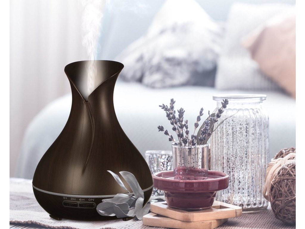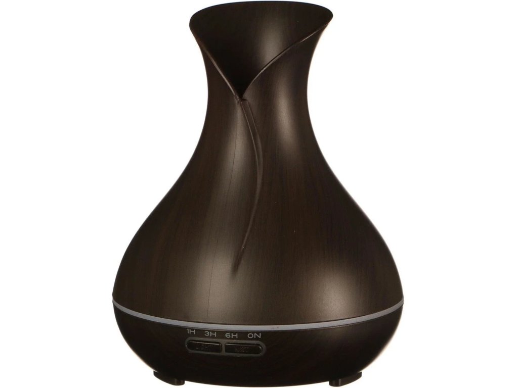 Aróma difuzér Vulcan tmavé drevo 350ml Ideálny doplnok do vašej domácnosti, ktorý krásne prevonia vaše miestnosti a dokáže zlepšiť vašu náladu. Aróma difúzory sú vhodné na aromaterapiu, chromoterapiu, vďaka svojmu dizajnu sú aj štýlovým interiérovým doplnkom. Toto zariadenie premieňa vodu na jemnú paru. Ak do vody pridáte niekoľko kvapiek esenciálneho oleja, elektrický aróma difuzér ich pomocou ultrazvuku rozloží na jemné mikročastice, ktoré prevoňajú váš byt. Aróma difuzér tiež neutralizuje nepríjemný zápach cigaretového dymu. Hlavné výhody: Nádherne prevonia vaše okolie Štýlový interiérový doplnok Premieňa vodu na paru pomocou ultrazvuku, žiadne spaľovanie Vhodný na aromaterapiu a chromoterapiu Odstraňuje cigaretový zápach Tichý provoz Na prevádzku tohto difuzéra nie je potrebná vatová tyčinka Technické parametre 24 V/0,5 A / 110-250 V 50/60 Hz Spotreba energie: 12 W Ultrazvuková frekvencia: 2,4 MHz Rozmery: 22,5 x 17 x 17 cm Odparovanie: 45-60 ml/hod. Rozsah: 12-20 m2 Hladina hluku: 35 dB Materiál: PP (polypropylén), ABS Prevádzka difúzora: 1H, 3H, 6H, zapnutý nepretržitý prevádzka Dĺžka napájacieho kábla: 160,5 cm Farba: tmavé drevo 1 Balenie: 1x sieťový adaptér 1x čistiaci kefka Použitie: Odstráňte kryt difúzora Pripojte konektor sieťového adaptéra na spodnej strane základne Uistite sa, že je kábel napájacieho adaptéra odpojený od elektrickej zásuvky Pomocou odmerky nalejte do nádoby vodu po značku maximálnej hladiny Do vody môžete pridať niekoľko kvapiek esenciálneho oleja, približne 23 do zásuvky Stlačením tlačidla "MIST" vyberte čas prevádzky difuzéra (1H, 3H, 6H, ON nepretržitý prevádzka), dlhším podržaním tlačidla "MIST" vyberte intenzitu pary. Po zapnutí difuzéra je vždy nastavená nižšia intenzita. Ak chcete difuzér vypnúť, stlačte tlačidlo "MIST" 5-krát. Pomocou tlačidla "LIGHT" vyberte farbu svetla Spustite difuzér (pri prvom spustení môže výroba pary trvať približne 3-10 min.) Upozornenie: V prípade, že je difuzér vypnutý, je potrebné ho zapnúť: Ako arómu používajte len prírodné esencie bez iných chemických látok Do prístroja nenalievajte horúcu ani minerálnu vodu kg LED dióda: Áno Model: Vulcan Objem: 350 ml Použitie: v domácnosti Pripojenie: elektrické Časovač: ÁnoDodatočné parametre