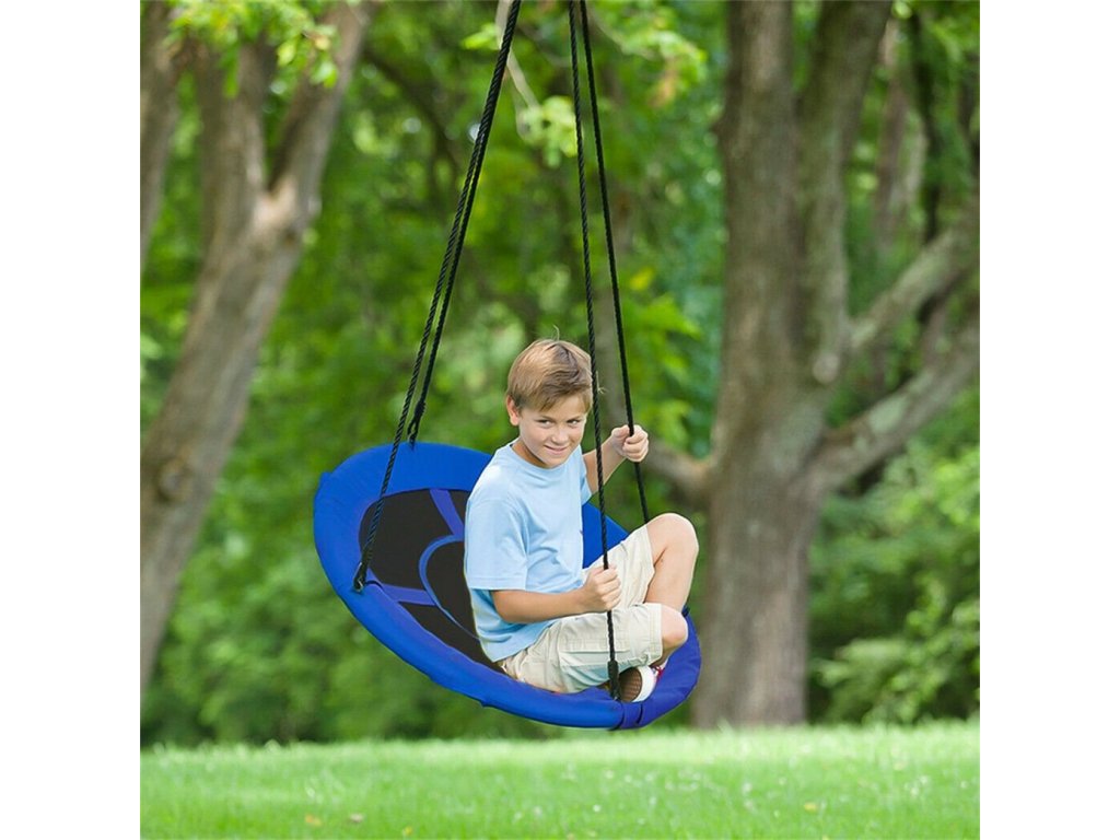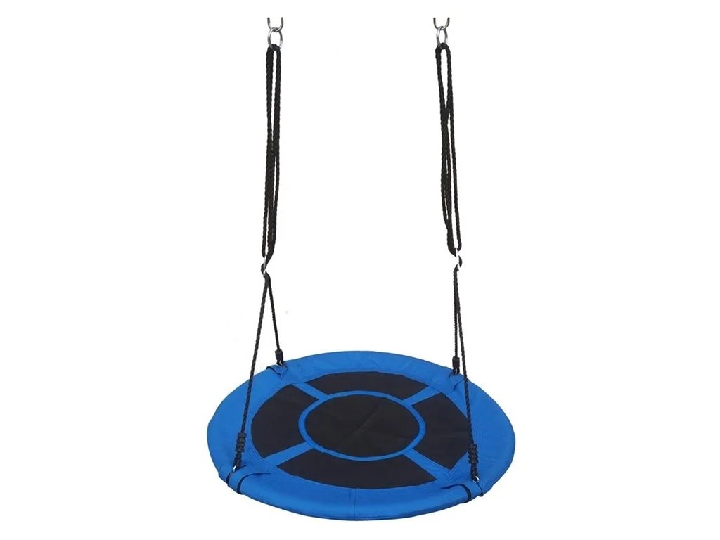 Priemer: 102 cm Nosnosť: 150 kg Farba: modrá/čierna Certifikát EN71 Rám: 4 x 25x1,1 mm, pozinkovaná oceľ Kryt rámu: Rám: Oxford + 10 mm poťah z EPE peny Laná: 2 x 10,5 mm - nastaviteľná výška 105-160 cm, ukončené oceľovým krúžkom Upozornenie: len na domáce použitieDodatočné parametre
