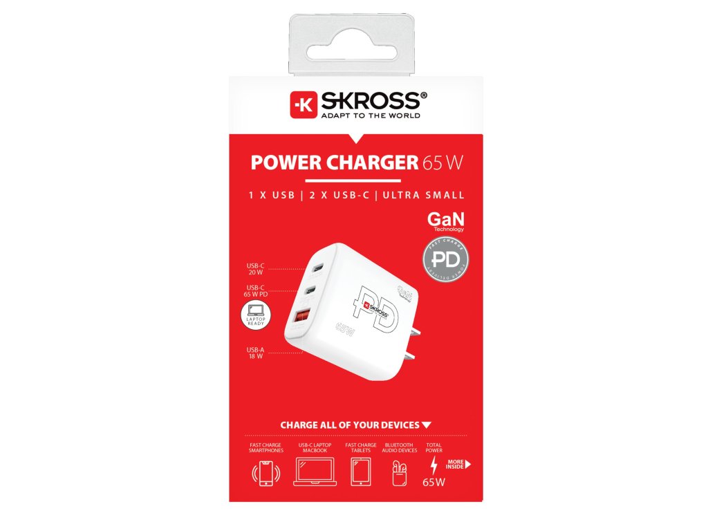 SKROSS Nabíjací adaptér USB A+C Napájacia nabíjačka 65W GaN US, Power Delivery, typ A