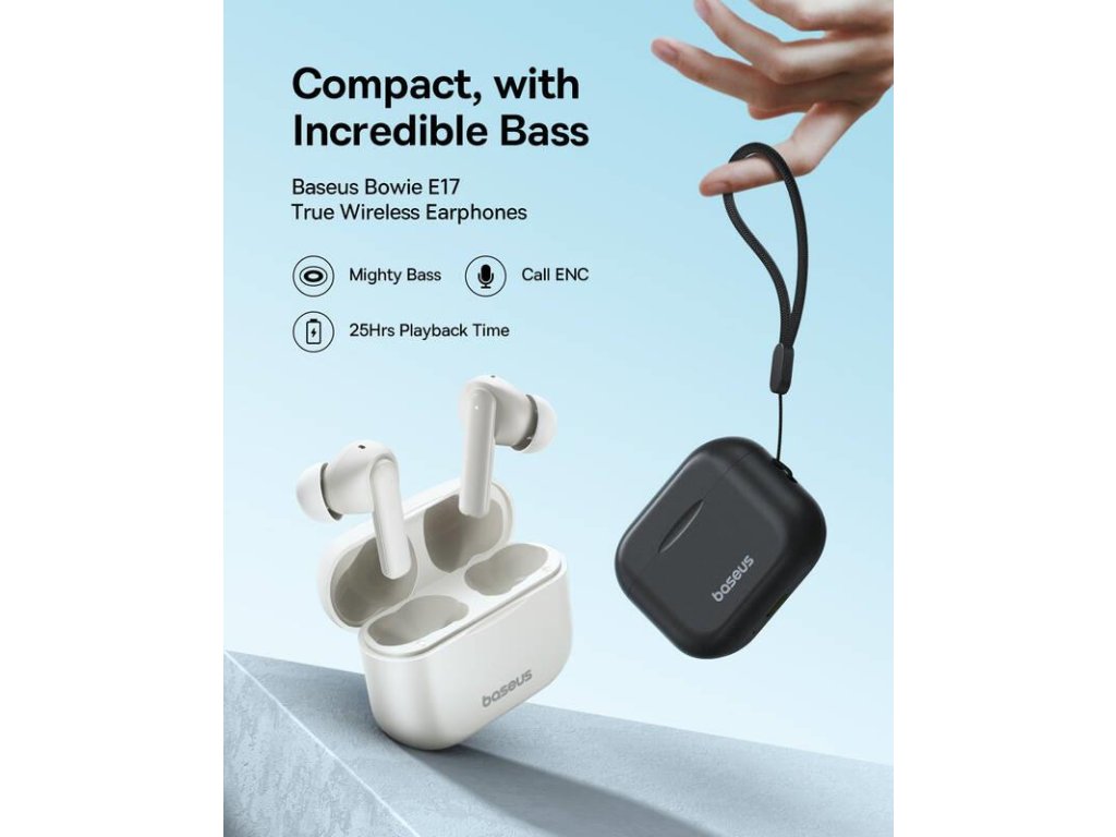 Bezdrôtové sluchátka Baseus Bowie E17 s True Wireless Sound sa môžu pochváliť pohodlným dizajnom a pohlcujúcim zvukom, ktorý oceníte nielen pri počúvaní hudby, ale aj pri práci, hraní her alebo sledovaní filmov. Tento model ponúka široký frekvenčný rozsah od 20 Hz do 20 kHz, čo znamená, že uslyšíte úchvatné basy a fantasticky čisté výšky v celom počuteľnom spektre. Spoľahlivý prenos Bezkáblové vyhotovenie je veľmi pohodlné, pretože vás nijako neomedzuje, nech už robíte čokoľvek. O prenos dať sa navyše stará spoľahlivý technológia Bluetooth 5.3 s dlhým dosahom, vysokou stabilitou a nízkou latenciou. To znamená, že zvuk bude vždy dokonale synchronizovaný s obrazom, čo oceníte najmä pri sledovaní filmov a hraní her, kde nízka latencia môže mať zásadný význam. Kľúčové vlastnosti: Detailná akustika s čistými výškami a hlbokými basmi Stabilné pripojenie Bluetooth 5.3, nízka latencia Dlhá výdrž batérie je ideálna na cestovanie a prácu Vďaka rýchlemu nabíjaniu je vždy pripravený na použitie Potlačenie hluku eliminuje rušivé zvuky z pozadia počas hovorov Pútavý dizajn, ktorý dokonale padne do uší Elegantný dizajn sa hodí na každodenné používanieDodatočné parametre