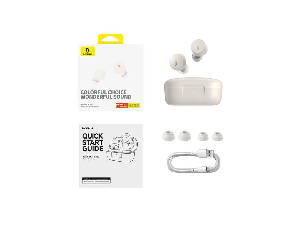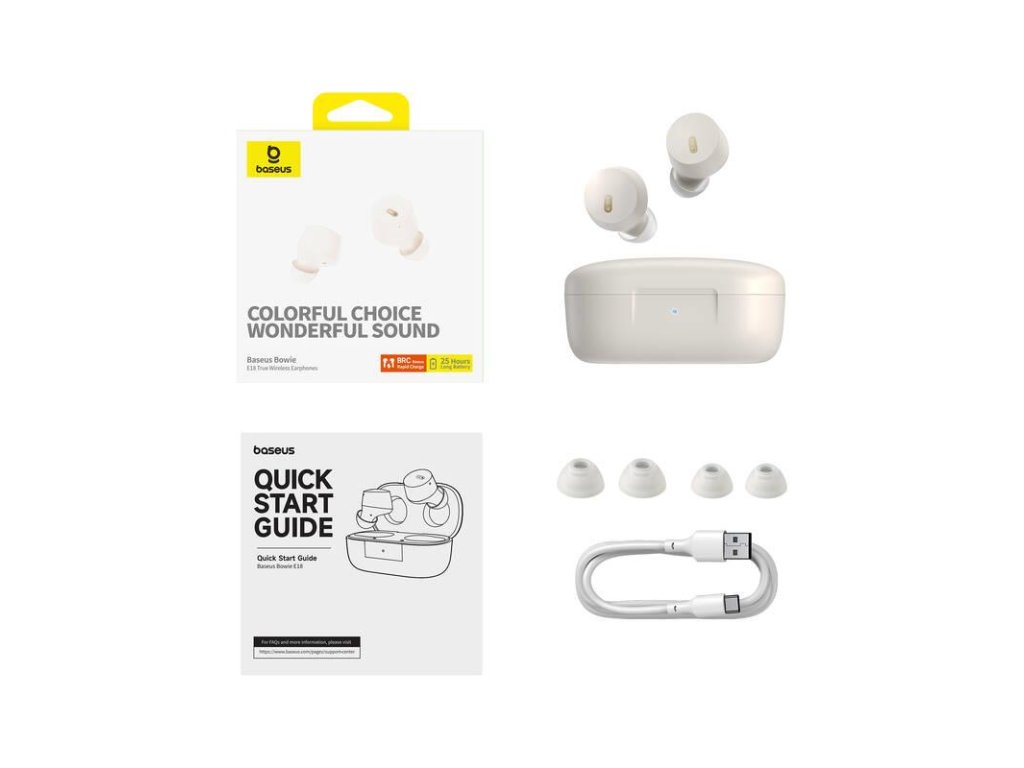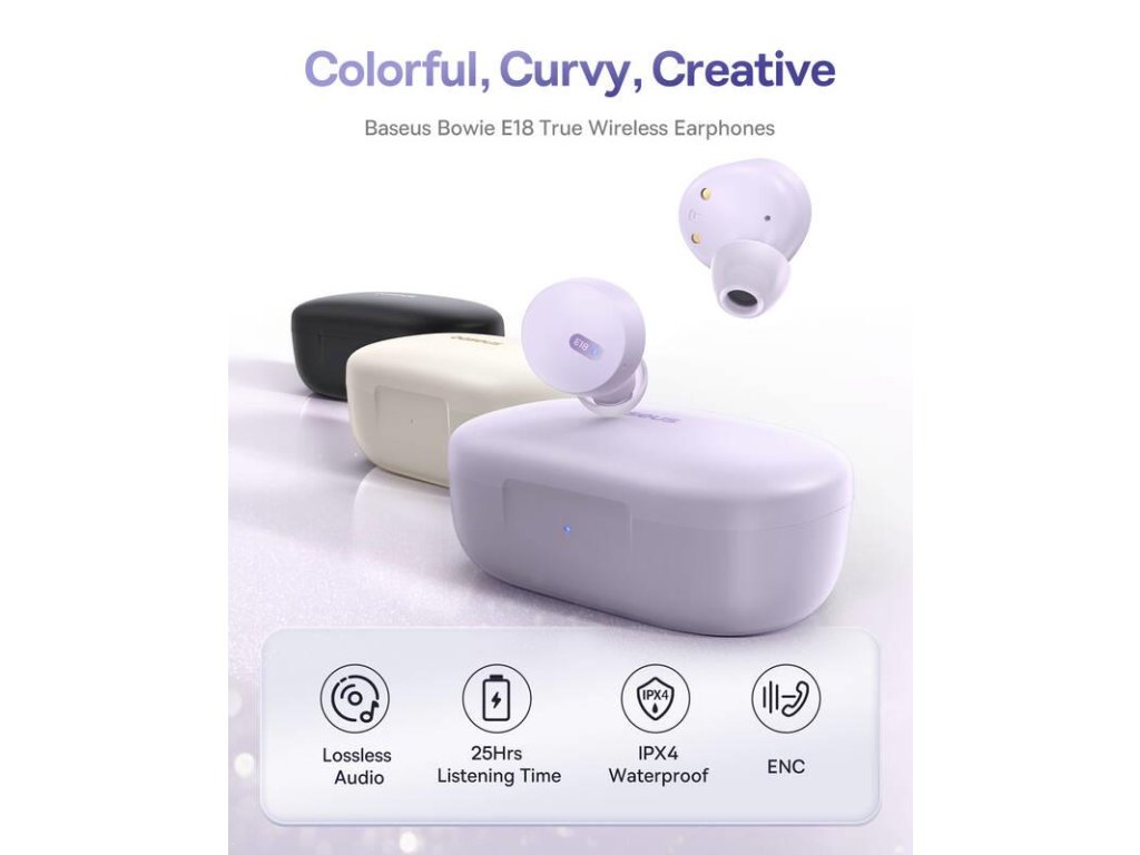 Bezdrôtové sluchátka TWS Baseus Bowie E18 sú určené pre milovníkov hudby, ktorým záleží na špičkovej kvalite a pohodlí. Vďaka širokému frekvenčnému rozsahu 20 Hz až 20 kHz, mikromembráne a precíznej akustickej komôre poskytujú bezstratovú reprodukciu každého tónu, výnimočnú čistotu a hĺbku, ktorá vás úplne pohltí. Sú vhodné nielen na počúvanie skladieb, ale oceníte ich aj pri sledovaní filmov, videí alebo hraní hier. Dokonalé pohodlí Tento model môžete bez problémov nosiť celé hodiny. Má ergonomický tvar a optimálny prítlak, takže vám dokonale padnú do uší. Pre ešte väčšie pohodlie sú súčasťou balenia rôzne veľkosti nástavcov do uší, ktoré sa plne prispôsobia užívateľovi. Určite oceníte aj ľahkú konštrukciu, vysokú stabilitu a stupeň krytia IPX4, ktorý odolá dešti a potu. Preto si ich pokojne vezmite na beh alebo do posilňovne. Detailná akustika s čistými výškami a hlbokými basmi Vysoko verný zvuk poteší aj tých najnáročnejších poslucháčov Stupeň krytia IPX4 je ideálny na športovanie alebo používanie v dešti. Skvele sedí v ušiach a je ľahkýDodatočné parametre