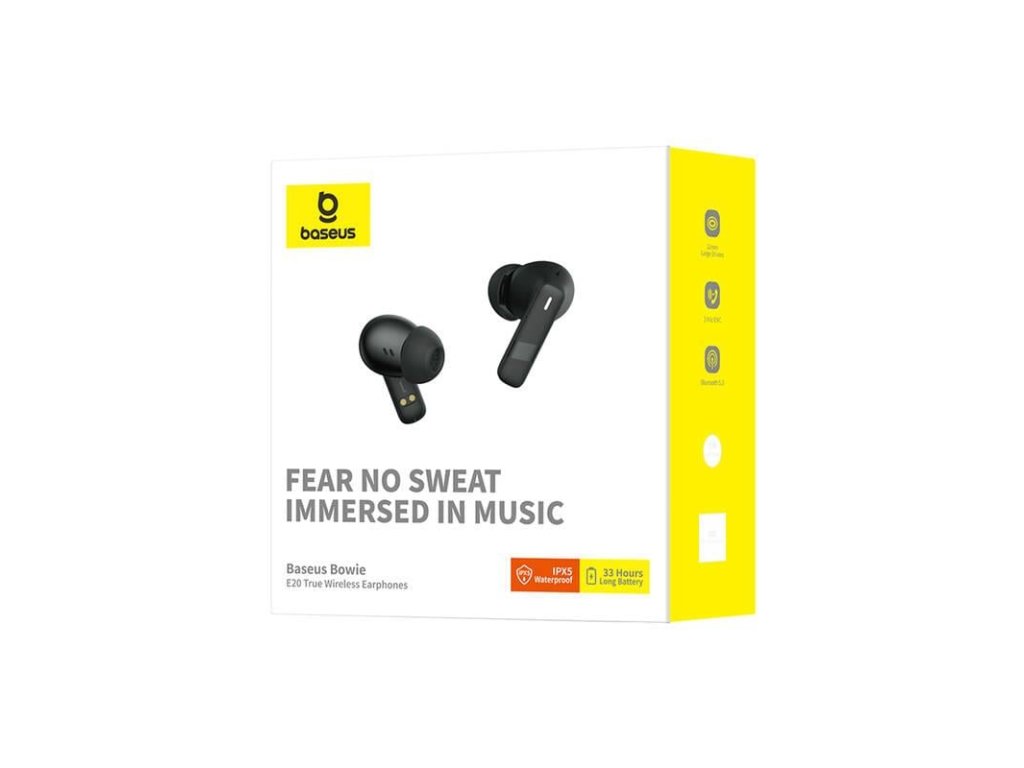 Bezdrôtové sluchátka Baseus E20 ponúkajú pohodlný a kvalitný zvuk pre užívateľov na cestách. Tieto sluchátka sú navrhnuté tak, aby poskytovali pohodlné nosenie, spolehlivé pripojenie a pôsobivý zvukový výkon, takže sú ideálne na každodenné používanie, cvičenie a cestovanie. Vďaka vodotesnosti s krytím IP X5 poskytujú užívateľom izbu pri behu, cvičenie v posilňovni atď. Predĺžená výdrž batérie je tiež veľkou výhodou pri cestovaní alebo vykonávaní každodenných úloh. Pridaný mikrofón ENC (Environmental Noise Cancellation) eliminuje všetky okolité zvuky, ktoré by vás ovlivňovali počas hovorov na stretnutiach, osobných rozhovorov, pri hraní hier atď. Náhlavná súprava s mikrofónom a mikrofónom na komunikáciu s okolím Mikrofón ENC prispieva k jednoduchej zamotávania Pripojenie Bluetooth na bezproblémové párovanie so zariadeniami Kompaktný a ľahký dizajn Dotykové ovládanie Dlhá výdrž batérie na dlhšie používanie Technológia potlačenia hluku pre pohlcujúci zážitok z počúvaniaDodatočné parametre