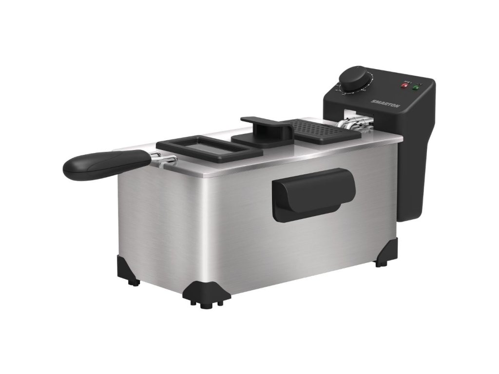 Fritéza SMARTON Na smažené křupavé hranolky, cibuľové kruhy alebo krídelká nemusíte chodiť do reštaurácie. Fritéza Smarton vám všetky tieto pokrmy pripraví v pohodlí domova. Fritéza pojme až 3 litre oleja a dokáže pripraviť až 1 kg vášho obľúbeného jedla. V závislosti od typu pripravovaného pokrmu môžete nastaviť aj teplotu v rozmedzí 90 až 190 °C a využiť náhľadové okienko pre maximálny prehľad. Nádoba fritézy s objemom 3 l Možno pripraviť až 1 kg potravín Nádoba z nehrdzavejúcej ocele Víko s náhľadovým okienkom na úplnú kontrolu prípravy potravín Pohodlné mechanické ovládanie Nastaviteľná regulácia teploty od 90 °C do 190 °CDodatočné parametre