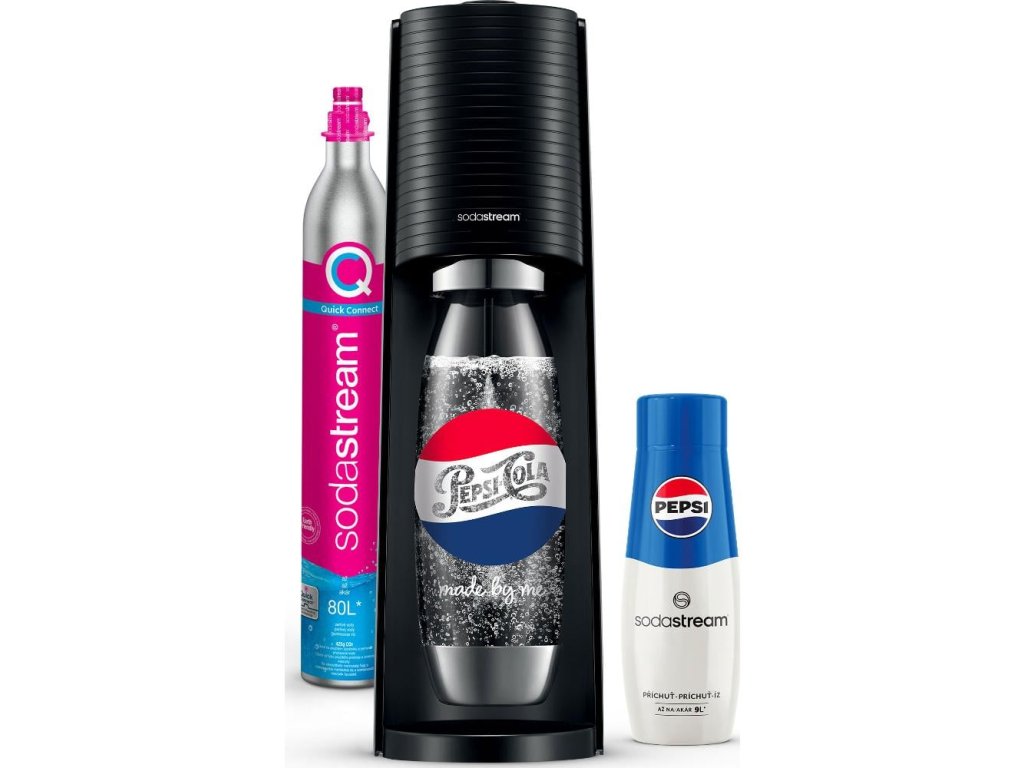 Výrobník sody SodaStream TERRA Black Pepsi Mpack Limitovaná edice TERRA Black PEPSI MADE BY ME Připrav si Pepsi přesně podle sebe! Ikonická chuť, prémiový styl a maximální personalizace! Výrobník perlivé vody SodaStream TERRA přichází v limitované edici PEPSI MADE BY ME, která vám umožní připravit si svůj oblíbený nápoj přesně podle vlastní chuti – kdykoliv a v pohodlí domova. Elegantní černé provedení přístroje kombinuje matné a lesklé prvky, které podtrhují jeho moderní vzhled. Součástí balení je navíc exkluzivní lahev s retro logem PEPSI a nápisem MADE BY ME, která v sobě spojuje ikonický design a kvalitní provedení s kovovými detaily pro vyšší odolnost. Speciální sada je doplněna o originální příchuť PEPSI v koncentrované podobě (440 ml), ze které si snadno připravíte až 9 litrů hotového nápoje podle vlastní chuti – jemný, výraznější nebo opravdu intenzivní. Lahve do výrobníku se vkládají jednoduše pomocí zacvaknutí – bez šroubování, bez starostí. Výrobník pracuje bez elektřiny a obsluha je maximálně jednoduchá. Obsah balení: 1× výrobník TERRA černý 1× QuickConnect bombička CO2 až pro 80 l 1× lahev FUSE s kovovými prvky v designu PEPSI MADE BY ME (objem 1 l) 1× příchuť PEPSI (440 ml) Příchuť Jak nápoj připravit? Příchuť vždy přilévejte až do hotové perlivé vody, rozhodně ne už před vložením do výrobníku. Při sycení nápoje by totiž příchuť způsobila napěnění a došlo by k nežádoucímu zalepení mechanismu výrobníku. Lahev s připravenou perlivou vodou nakloňte a příchuť pomalu nalévejte po stěně. Lahev zavřete a lehce promíchejte. A je to!Dodatočné parametre
