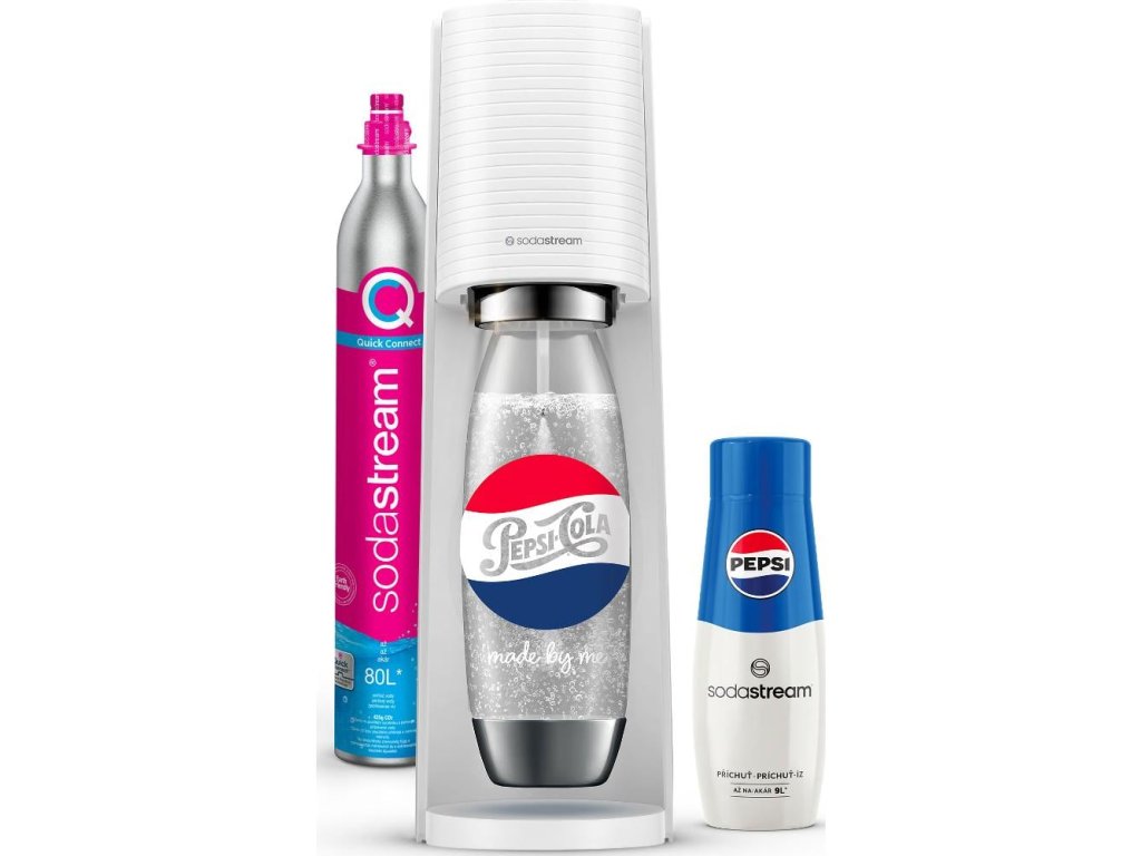 Výrobník sody SodaStream TERRA White Pepsi Mpack Limitovaná edice TERRA White PEPSI MADE BY ME Připrav si Pepsi přesně podle sebe! Ikonická chuť, prémiový styl a maximální personalizace! Výrobník perlivé vody SodaStream TERRA přichází také v elegantním bílém provedení jako limitovaná edice PEPSI MADE BY ME, která vám umožní připravit si svůj oblíbený nápoj přesně podle vlastní chuti – kdykoliv a v pohodlí domova. Matně bílý přístroj se stylovými lesklými detaily zapadne do každého interiéru a potěší milovníky čistého designu. Součástí balení je aj exkluzivní lahev s retro logem PEPSI a nápisem MADE BY ME, která propojuje ikonický vzhled s kvalitním zpracováním – kovové prvky dodávají lahvi moderní vzhled i vyšší odolnost. Sada je doplněna o originální příchuť PEPSI v koncentrované podobě (440 ml), ze které si jednoduše připravíte až 9 litrů osvěžujícího nápoje podle vlastní chuti – jemnější nebo intenzivnější, přesně tak, jak to máte rádi. Lahve do přístroje se vkládají pomocí zacvaknutí – bezšroubování a bez zbytečných kroků. Výrobník funguje bez použití elektřiny, ovládání je intuitivní a pohodlné. Obsah balení: 1× výrobník TERRA bílý 1× QuickConnect bombička CO2 až pro 80 l 1× lahev FUSE s kovovými prvky v designu PEPSI MADE BY ME(objem 1 l) 1× příchuť PEPSI (440 ml) Příchuť Jak nápoj připravit? Příchuť vždy přilévejte až do hotové perlivé vody, rozhodně ne už před vložením do výrobníku. Při sycení nápoje by totiž příchuť způsobila napěnění a došlo by k nežádoucímu zalepení mechanismu výrobníku. Lahev s připravenou perlivou vodou nakloňte a příchuť pomalu nalévejte po stěně. Lahev zavřete a lehce promíchejte. A je to!Dodatočné parametre