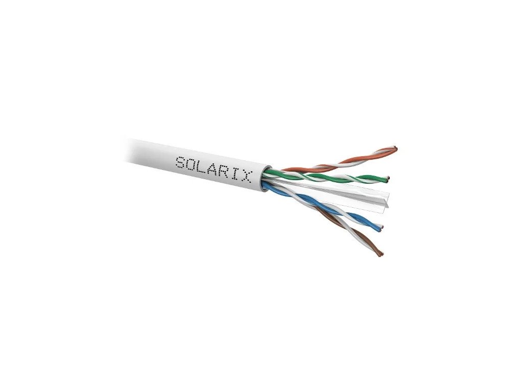 Solarix UTP CAT6 305m Inštalačný kábel kategórie 6 je vysokokvalitný štvorpárový kábel s PVC plášťom s třídou reakcie na oheň Eca určený na horizontálne inštalácie štruktúrovanej kabeláže, ktorý bez problémov splňuje a prevyšuje požiadavky špecifikované v medzinárodných normách ANSI/TIA 568, ISO/IEC 118 E vrátane všetkých najnovších doplnkov. Vodiče sú vyrobené z medeného drôtu AWG 23. Jednotlivé pary sú oddelené plastovým krížom. ZÁKLADNÉ ŠPECIFIKÁCIE Kategória: cat.6 Materiál: meď Typ plášťa: PVC Dĺžka: 305 mDodatočné parametre