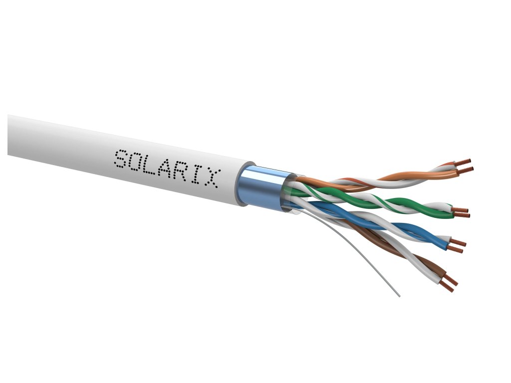 Kabel Solarix licna je určený predovšetkým na výrobu prepojovacích káblov pre počítačové a telekomunikačné siete. Flexibilita tohto typu kábla je zabezpečená tým, že jednotlivé vodiče tvoria kábel, ktorý je opletený z tenkých medených drôtov. Kabel má prierez AWG 24 a je k dispozícii v tienenej aj netienenej verzii. V prípade kábla FTP sú vodiče tienené hliníkovou fóliou. Farba plášťa je v prípade verzií FTP aj UTP sivá. Kabel licna nie je vzhľadom na svoje vlastnosti (vyšší útlum) vhodný na horizontálnu kabeláž. Kategória. Najvyšší podporovaný protokol [?]: 1000BaseT Najvyššia teoretická rýchlosť, ktorú možno na kábli dosiahnuť Tenenie: fólia okolo všetkých párov Vodič [?]: 0, 50 mm AWG 24 medený vodič Typ a priemer vodiča Izolácia [?] : polyetylén 0, 9 mm Typ a priemer izolácie Plá kábla: 5 mm Hmotnosť: 27 kg NVP [?] : 67 % Nominálna rýchlosť šírenia - pomer rýchlosti signálu v kábli k rýchlosti svetla v %. Opoždenie šírenia [?] : 535 ns/100 m Zpoždenie signálu na jednom páre Zpoždenie [?] : 20 ns/100m Rozdiel zpoždenia signálu medzi najrýchlejším a najpomalším párom Teplota skladovania: -20 °C až 60 °C Prevádzková teplota: 0°C až 50°CDodatočné parametre