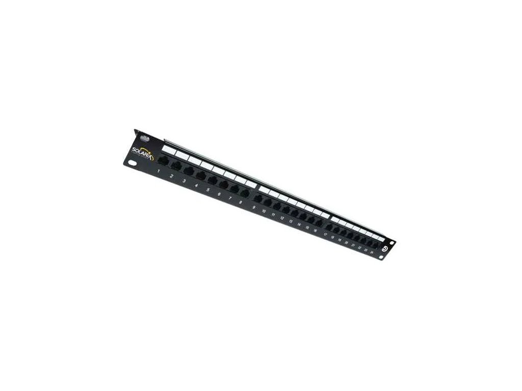 Patch panel Solarix s označením SX24L-5E-UTP-BK je panel osadený 24 portami RJ45, ktorého súčasťou je vyväzovacia lišta slúžiaca k pevnému uchyteniu a prehľadnému usporiadaniu káblov. Dátový kábel sa zakončuje do duálnej IDC svorkovnice typu 110/Krone – tj na zarezanie je možné použiť nástroj typu 110 i Krone. Svorkovnica je z dôvodu ľahkého zakončenia kábla označená podľa štandardu T568A aj T568B, a to za pomoci farieb párov a číselného označenia jednotlivých vodičov priamo na doske plošných spojov (nepárne číslo označuje vždy polofarebný vodič a párne plne farebný). Rovnako ako všetky ostatné komponenty štruktúrovanej kabeláže Solarix je tento panel vyrobený tak, aby zaručoval maximálnu životnosť, veľmi dobrú funkčnosť a predovšetkým vysokú spoľahlivosť. Tento patch panel Solarix spĺňa požiadavky na komponenty CAT5E definované v štandardoch TIA/EIA 568, EN 50173 a ISO 11801. Farba patch panela je čierna; veľkosť v dátovom rozvádzači je 1U. Kategória: CAT5E Najvyšší podporovaný protokol: 1000BaseT Najvyššia teoretická rýchlosť, ktorú je možné na kábli dosiahnuť Počet portov: 24 Počet portov RJ45 na paneli Vyväzovacia lišta: áno Min. životnosť portu: 1000 zapojení/odpojení Životnosť portu RJ45 - tj. počet cyklov zapojenia a odpojenia patch kábla Krytie kontaktov: 50 µ zlata a 100 µ niklu Materiál a množstvo krytia kontaktov konektora RJ45 Svorkovnica: duálna 110/Krone 8p8c Typ svorkovnice životnosť svorkovnice: 200 zarezaní Životnosť svorkovnice - tj. počet cyklov zarezania inštalačného kábla Veľkosť vodiča: AWG 26 - 22 Odporúčaný priemer vodiča inštalačného kábla pre svorkovnicu komponentu Materiál nekovových častí: FR plast podľa UL94-0 Typ plastových materiálov na komponent Farba: čierna Veľkosť: 4 Hĺbka: 109 mm Skladovacia teplota: -40 až 70 ° C Prevádzková teplota: -10 až 60 ° C Max. prevádzková vlhkosť: 93%Dodatočné parametre