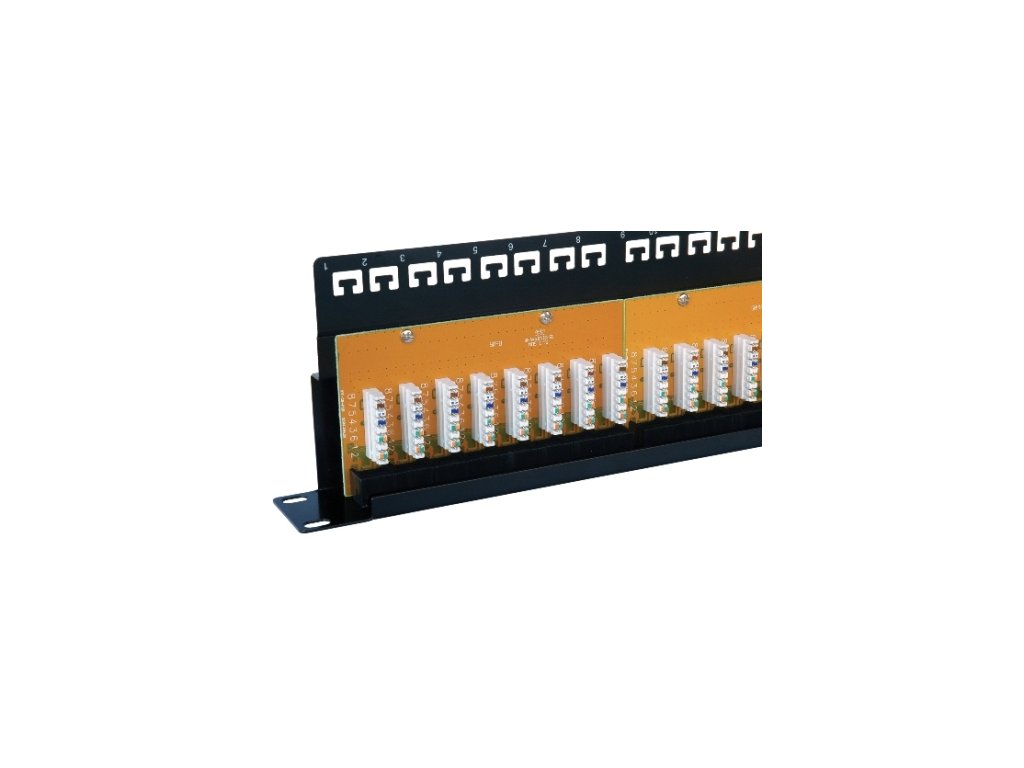 Patch panel Solarix SX24L-6-UTP-BK je netienený panel CAT6 osadený 24 portami RJ45. Dôležitou súčasťou tela tohto panelu je vyväzovacia lišta, ktorá slúži na pevné uchytenie káblov. Inštalačný kábel sa na tomto paneli produktového radu Solarix - CAT6 zakončuje do duálnej IDC svorkovnice typu 110/Krone – tj na zarezanie je možné použiť nástroj typu 110 i Krone. Svorkovnica panelu je označená podľa štandardu T568A aj T568B. Rovnako ako všetky ostatné komponenty štruktúrovanej kabeláže Solarix je aj tento panel vyrobený tak, aby poskytoval veľmi dobrú funkčnosť a vysokú spoľahlivosť. Tento patch panel spĺňa požiadavky na komponenty CAT6 definované v štandardoch ANSI/TIA/EIA 568, EN 50173 a ISO 11801. Farba patch panelu je čierna; veľkosť v dátovom rozvádzači je 1U. Kategória: CAT6 Najvyšší podporovaný protokol: 1000BaseT, 1000BaseTX Najvyššia teoretická rýchlosť, ktorú je možné na kábli dosiahnuť Počet portov: 24 Počet portov RJ45 na paneli Vyväzovacia lišta: áno Min. životnosť portu: 1000 zapojení/odpojení Životnosť portu RJ45 - tj. počet cyklov zapojenia a odpojenia patch kábla Krytie kontaktov: 50 µ zlata a 100 µ niklu Materiál a množstvo krytia kontaktov konektora RJ45 Svorkovnica: duálna 110/Krone 8p8c Typ svorkovnice životnosť svorkovnice: 200 zarezaní Životnosť svorkovnice - tj. počet cyklov zarezania inštalačného kábla Zarezávacie nože: zliatina bronzu, P, Sn a Pb Materiál zárezových nožov na svorkovnici Veľkosť vodiča: AWG 26 - 22 Odporúčaný priemer vodiča inštalačného kábla pre svorkov Typ plastových materiálov na komponent Farba: čierna Veľkosť: 1U Výška: 44 mm Šírka: 484 mm Hĺbka: 109 mm Skladovacia teplota: -40 až 70 ° C Prevádzková teplota: -10 až 60 ° C Max. prevádzková vlhkosť: 93%Dodatočné parametre
