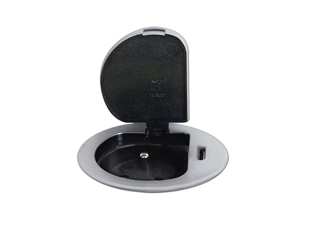 vstavaná zásuvka pre pracovné dosky, stoly alebo kuchynské skrinky elegantne skrytá elektrická zásuvka, nezaberá zbytočne miesto výklopné veko zabraňuje vniknutiu nečistot do zásuvky Navrhnuté tak, aby sa zabránilo stretnutiu tekutin pod pracovnú desku 1 zásuvka 230 VAC USB: 1x USB-C (PD): 5,0 V/3,0 A, 9,0 V/2,22 A, 12,0 V/1,67 A, 20 W Power Delivery PVC kábel 2 m, typ H05VV-F 3G 1,0 mm2, uhlová vidlica hornou hranou stolovej desky: 2-8 mm výška bloku pod hornou hranou desky: 80 mmDodatočné parametre