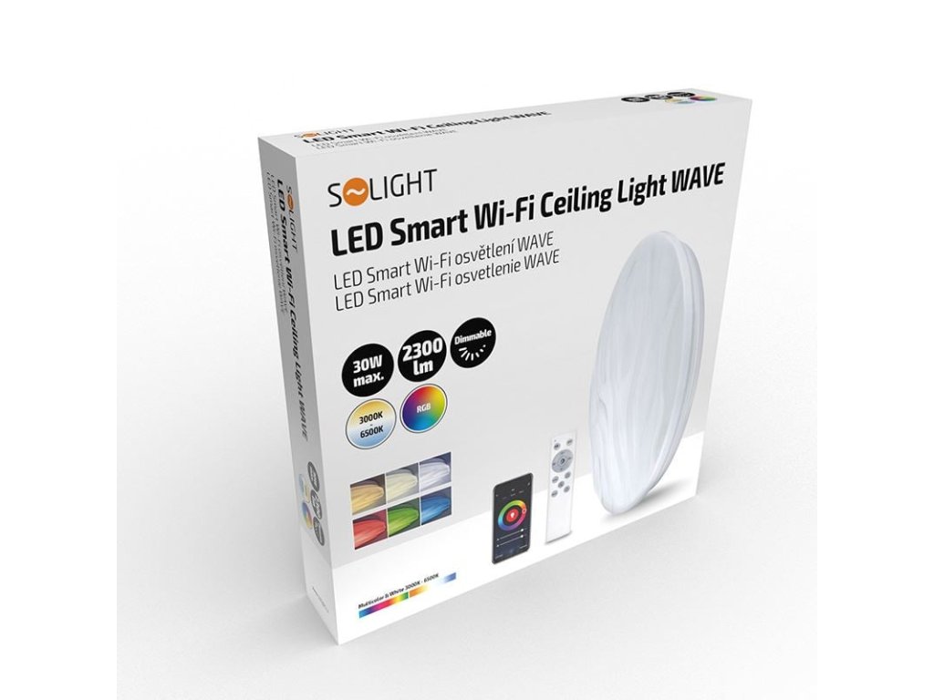 Osvetlenie LED SMART WIFI sa ovláda pomocou aplikácie v smartfóne. Podporuje Wifi 2,4GHZ, Android 4.1 a vyššie a IOS 8.0 a vyššie. Umožňuje nastaviť rôzne odtiene bielej (3000-6500K), farebné svetlo (RGB) a intenzitu svetla (stmievanie). Svetlo možno ovládať aj diaľkovým ovládačom (je súčasťou balenia) alebo zapínať a vypínať klasickým vypínačom. Príkon: max. 30 W svetelný tok: max. 2300 lm (pre 4000K) Teplota chromatickosti: 3000K-6500K (teplá - studená biela), RGB Možnosť výberu farby svetla v rámci stupnice RGB Podpora a kompatibilita: Wifi 2,4GHZ, Androi 4.1 a vyššia, IOS 8.0 a vyššia, aplikácia TuyaSmart, aplikácia SmartLife, pripojenie Amazon echo, Google Home Životnosť LED: 25 000 hodín Počet spínacích cyklov: 20 000 Uhol osvetlenia: 120° Index podania farieb Ra: >80 Materiál: Fe + PS Napätie: 220 - 240 V, 50 - 60 Hz Prevádzková teplota: -20°C až 40°C Tvar: okrúhly rozmery: 380 x 65 mm energetická trieda: GDodatočné parametre