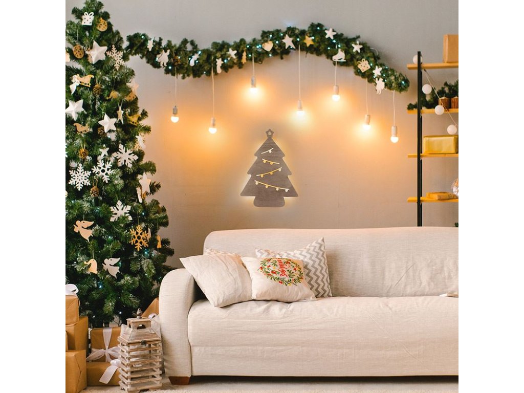Nástenná dekorácia LED s motivom vianočného stromčeka Počet LED diód: 24 farba svetla: teplá biela (žltá) Napájanie: 2x batérie AA (nie sú súčasťou dodávky) výdrž baterií: približne 72 hodín (v závislosti od kvality baterií) stupeň ochrany: IP20 (použitie v interiéri) rozmery: 32 balenie: farebná škatuľaDodatočné parametre