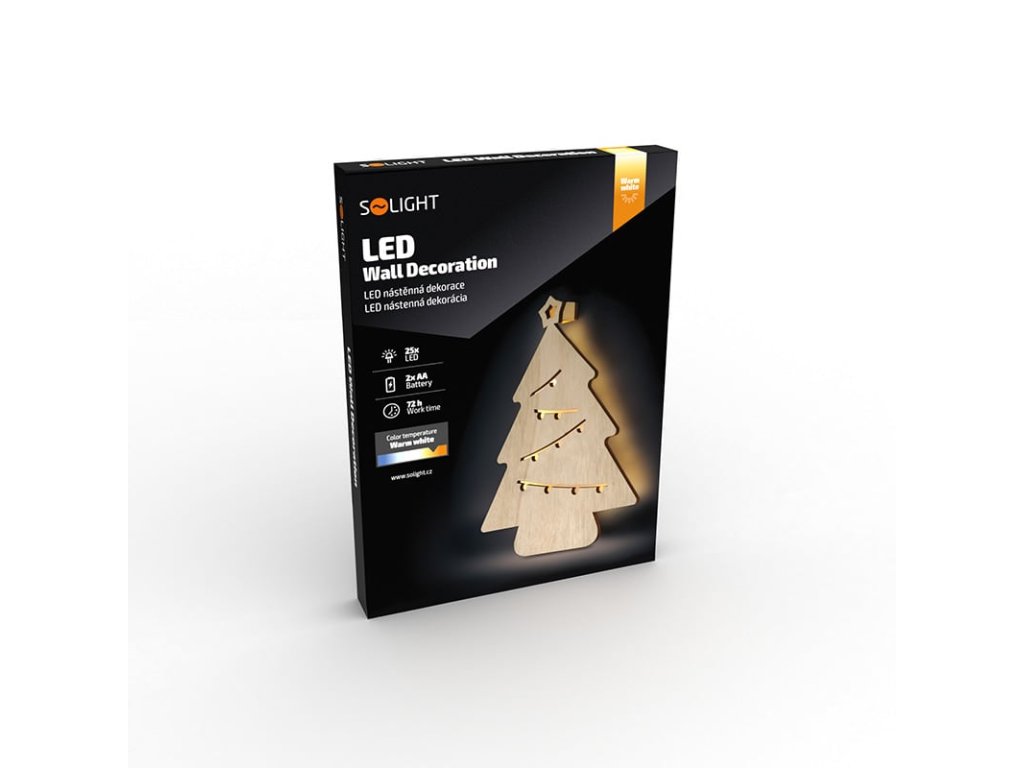 Solight LED nástenná dekorácia vianočný stromček, 24x LED, 2x AA