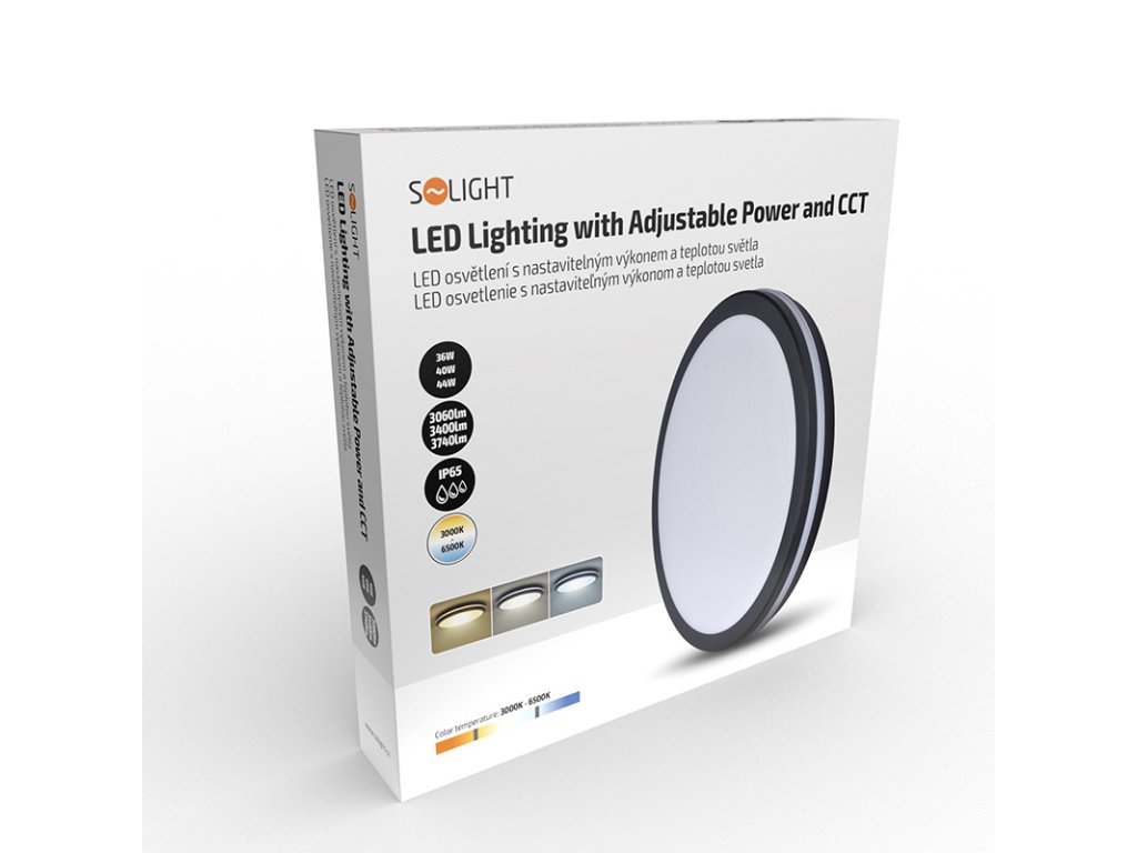 Osvetlenie LED s nastaviteľnou teplotou svetla a výkonom. Svetlo má krytie IP65 proti vlhkosti, a preto je vhodné do interiéru aj exteriéru. Má špeciálny prepínač, ktorý umožňuje nastaviť teplotu svetla (chromatickosť) od teplej, cez neutrálnu až po studenú bielu (3000 K, 4000 K alebo 6500 K). Ďalší prepínač umožňuje nastaviť výkon svetla na 36 W, 40 W a 44 W. Vhodné na vnútorné aj vonkajšie použitie: ložnice, obývacie izby, chodby, kúpeľne, technické miestnosti a miesta s vysokou vlhkosťou na inštaláciu na steny a stropy Spotreba: 36/40/44 W svetelný tok: 3060/40 výberu z 3000K, 4000K alebo 6500K (teplá, neutrálna alebo studená biela) Životnosť LED: 25 000 hodín uhol svietenia: 120° užitočný svetelný tok pri 120°: 3740 lm index podania farieb Ra: >80 materiál vnútorné použitie) Napätie: 175-265 V AC provozní teplota: -20 °C až 50 °C rozmery: 400x 50 mm energetická trieda: FDodatočné parametre