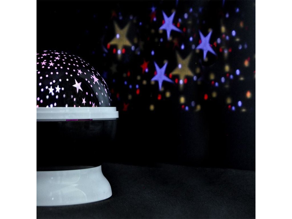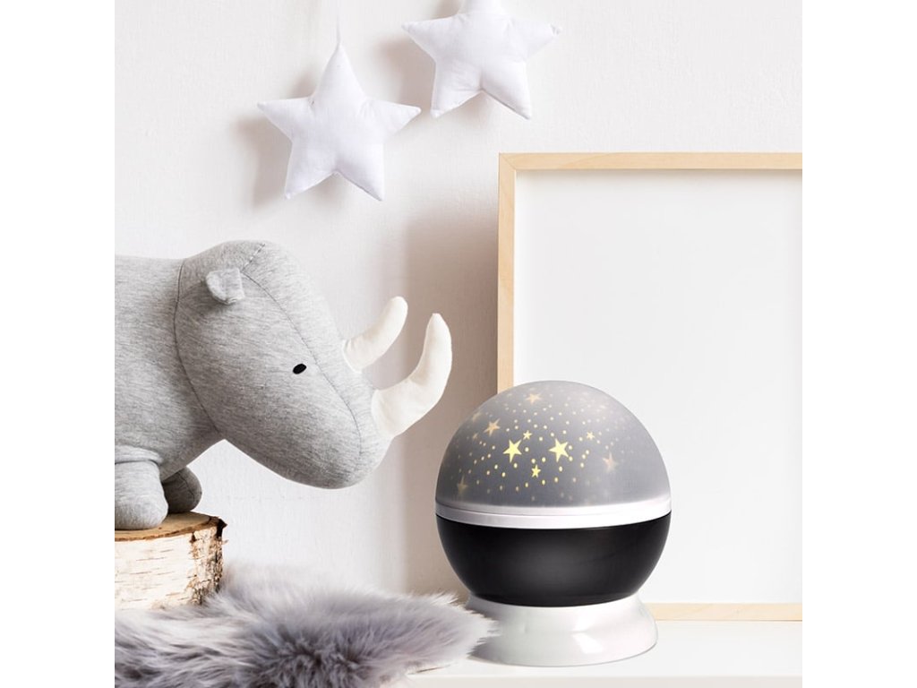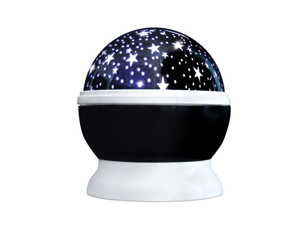 LED projekčná guľa premieta motívy hviezd a nočnej oblohy farba projekcie: biela, modrá, zelená, červená počet režimov osvetlenia: 9 (jednofarebné osvetlenie, prelínanie farieb, blikanie atď.) Funkcia otáčania gule napájanie: 4x AAA (nie je súčasťou dodávky) alebo kábel USB (je súčasťou dodávky) výdrž batérie: približne 72 hodín v závislosti od kvality batérie) Trieda ochrany: IP20 (použitie v interiéri) Rozmery: 15 x 13 cm farba: biela, čierna materiál: PVC balenie: farebná škatuľaDodatočné parametre