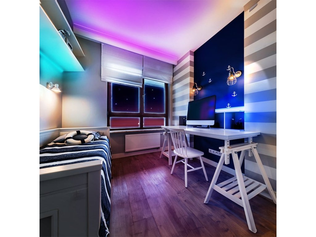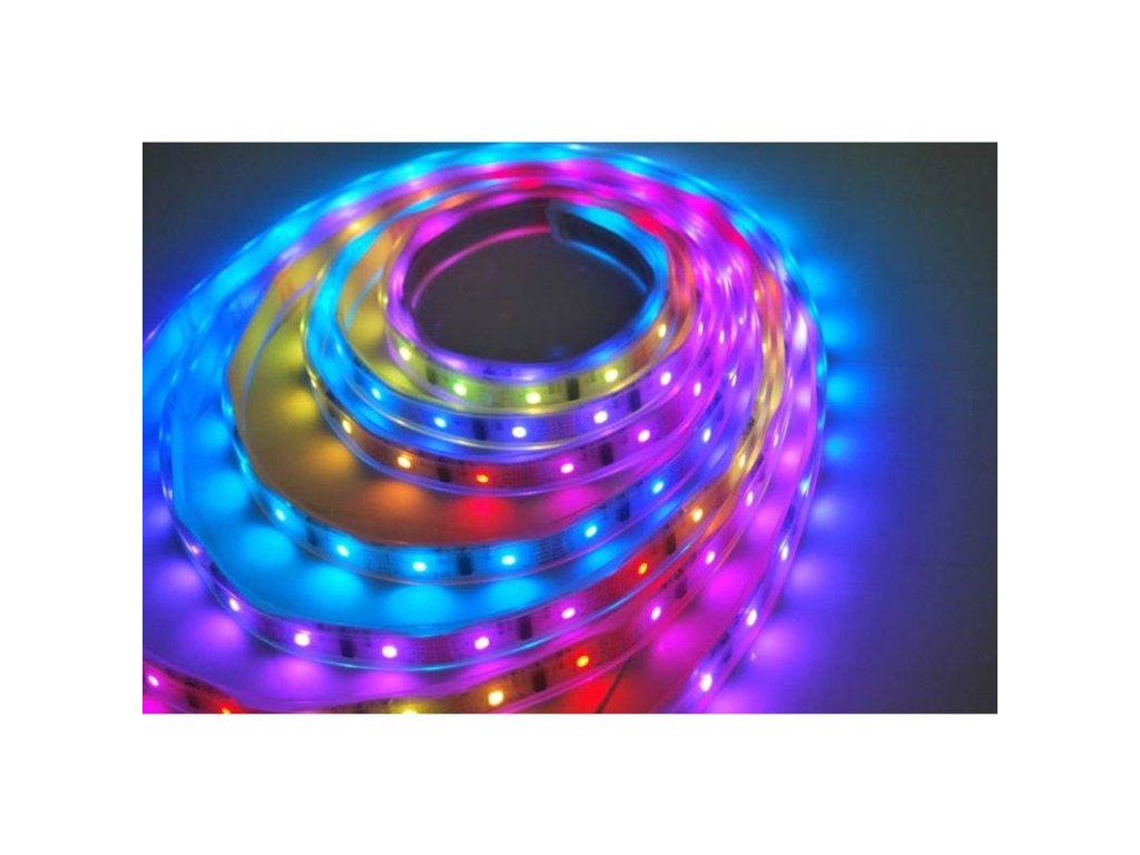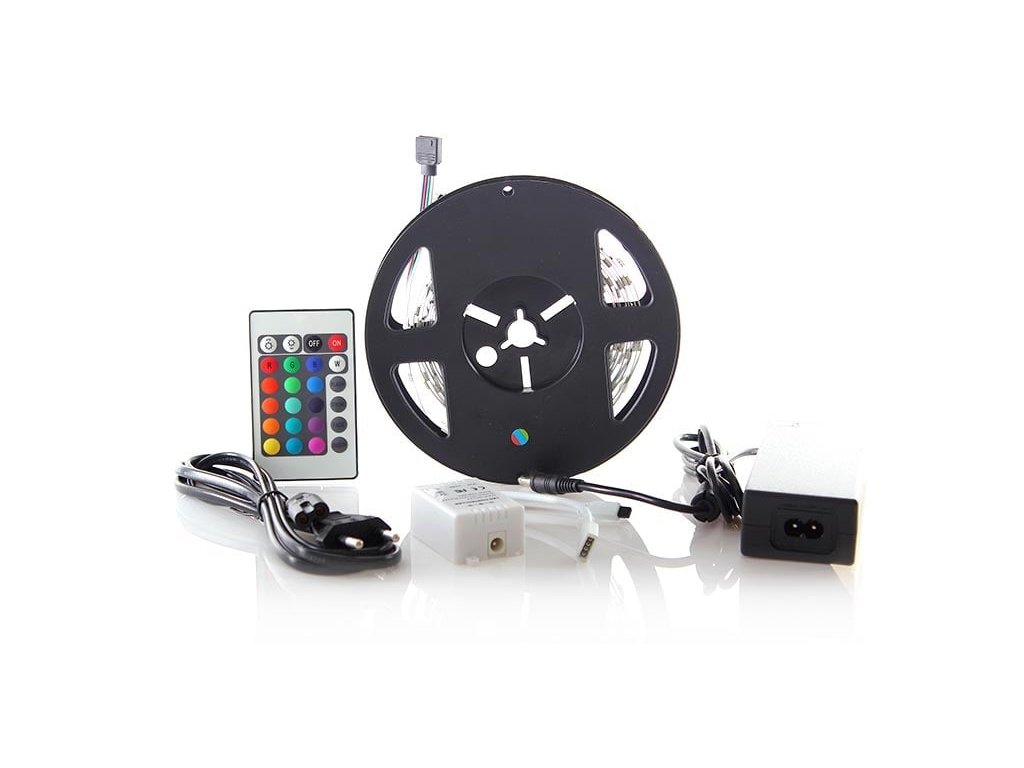 LED SMD5050 30 x LED/m, max. 7,2 W/m svetelný tok max. 360lm/m farba svetla: RGB - viacfarebná (možno prepínať diaľkovým ovládaním) prepínanie medzi 15 farbami a 4 farebnými efektmi Životnosť LED: 50 000 hodín Krytie IP20 časti sa dajú použiť ďalej) oboustranná samolepiaca páska 3M na zadnej strane svetelný kužeľ: 120° Napájací adaptér: AC 230V / DC 12V, 2000mA 1x IR RGB ovládač 1x diaľkový ovládač Farba pásky: biela cievka: 3 m pre maximálnuDodatočné parametre