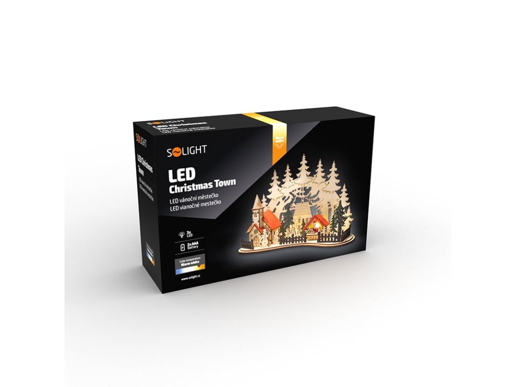 Solight LED vianočné mestečko s kostolom, 30x19cm, 2x AAA