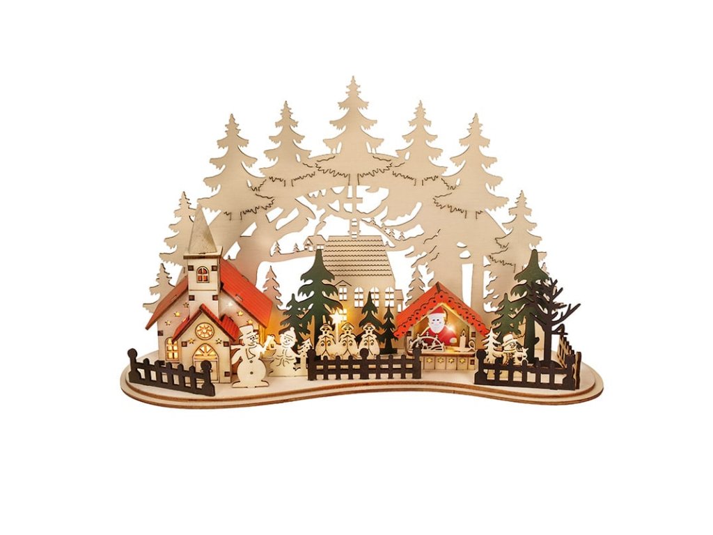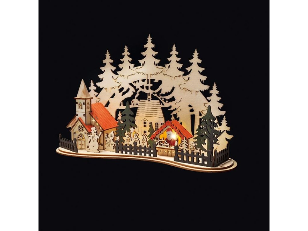 LED vianočné mestečko s kostolom Počet LED diód: 3 farba svetla: teplá biela napájanie: 2x AAA batérie (nie sú súčasťou balenia) Trieda ochrany: IP20 (vnútorné použitie) Rozmery: 30 x 19 x 9 cm materiál: drevo farba: biela, červená, zelenáDodatočné parametre