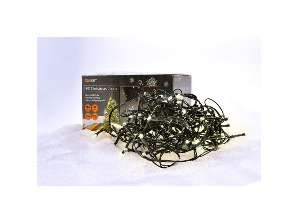 Solight LED vonkajšia vianočná reťaz, 100 LED diód, 10 m, 3 m vedenie, 8 funkcií, časovač, IP44, teplá biela