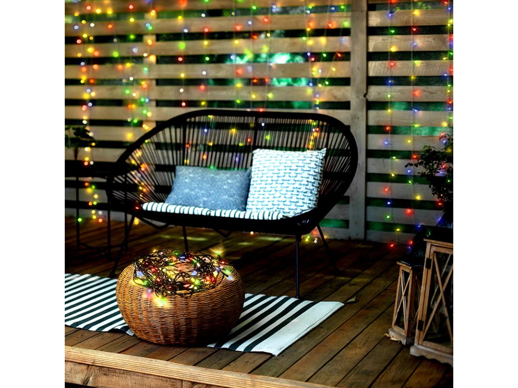 Počet LED diód: 100 farba svetla: viacfarebná 8 svetelných režimov (blikanie, prelínanie, stmievanie atď...) pamäťová funkcia - po zapnutí sa aktivuje naposledy použitý svetelný režim časovač 6h/18h - automaticky sa vypne po 6 hodinách od zapnutia a znovu sa zapne po 18 hodinách použitie v interiéri a exteriéri vzdialenosť diód: 10 cm dĺžka osvetľovacieho kábla: 10 m dĺžka napájacieho kábla: 3 m farba kábla: zelená spotreba energie: 2 W Napájanie: 230V AC / 31V DC Trieda ochrany: IP44 (vonkajšie a vnútorné použitie) pracovná teplota: -20°C až +50°CDodatočné parametre