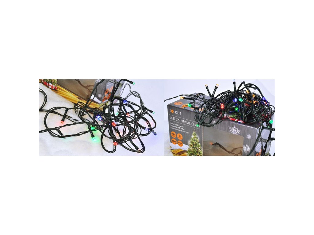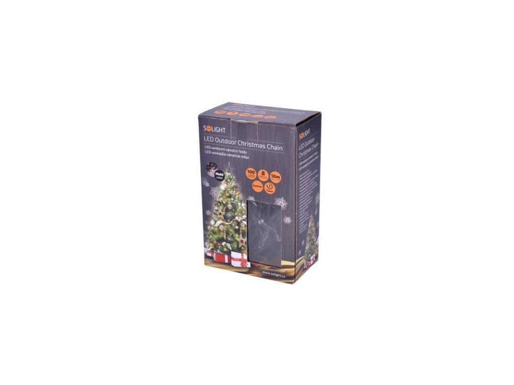 Solight LED vonkajšia vianočná reťaz, 100 LED diód, 10 m, 3 m vedenie, 8 funkcií, časovač, IP44, viacfarebná