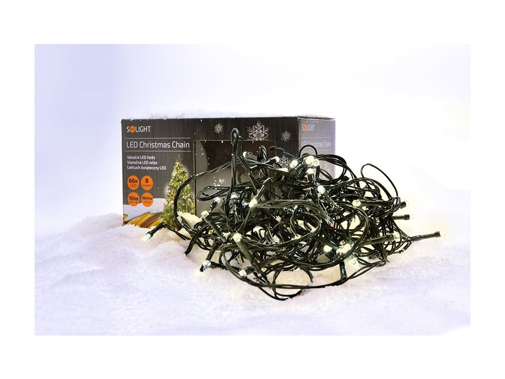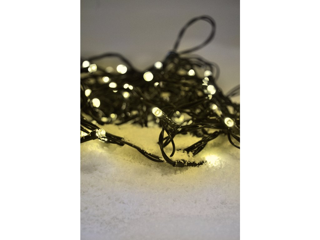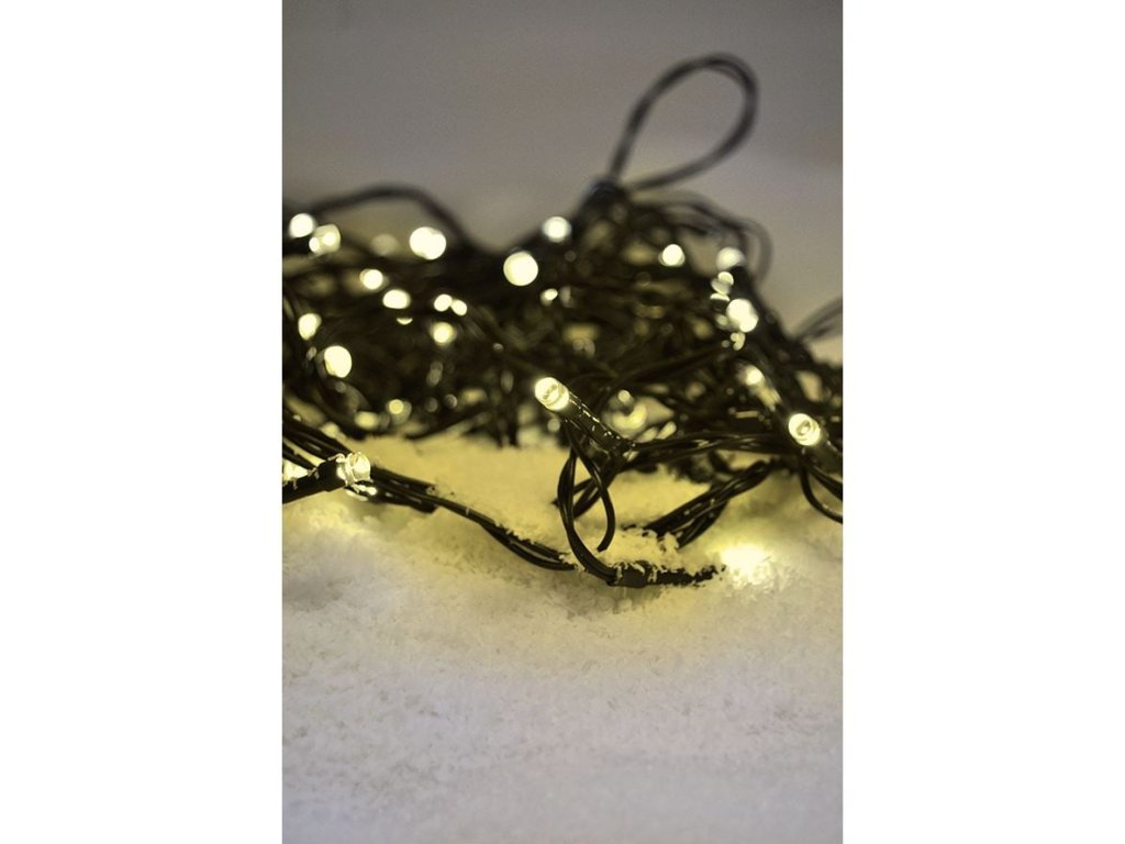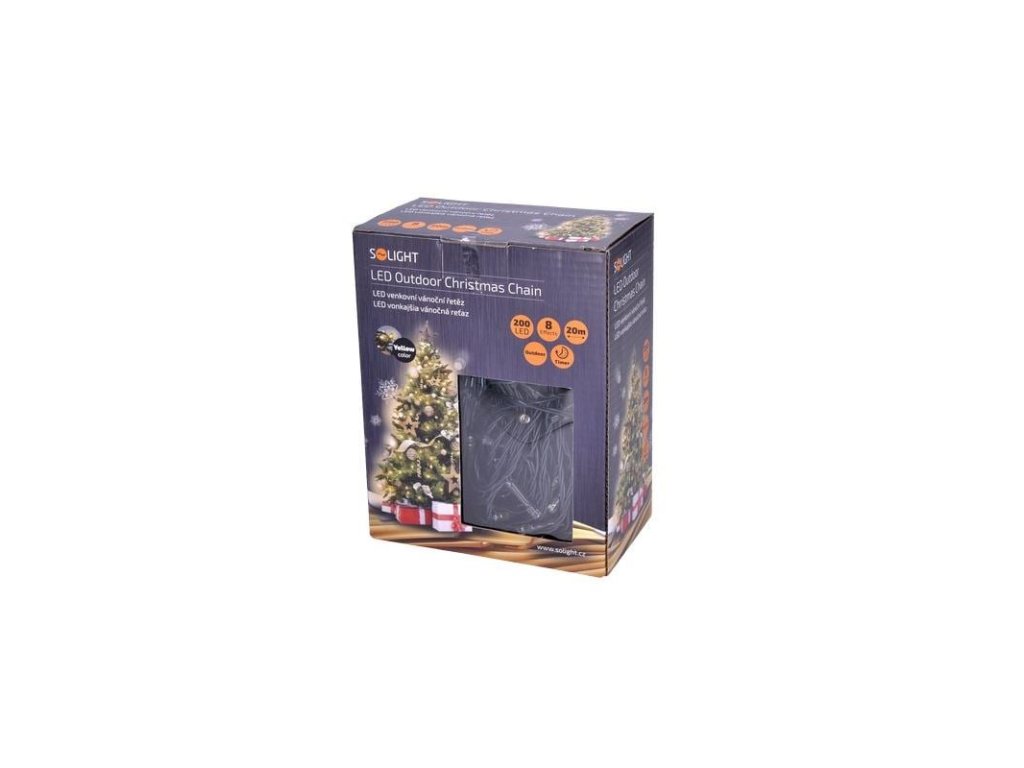 Solight LED vonkajšia vianočná reťaz, 200 LED diód, 20 m, 5 m vedenie, 8 funkcií, časovač, IP44, teplá biela