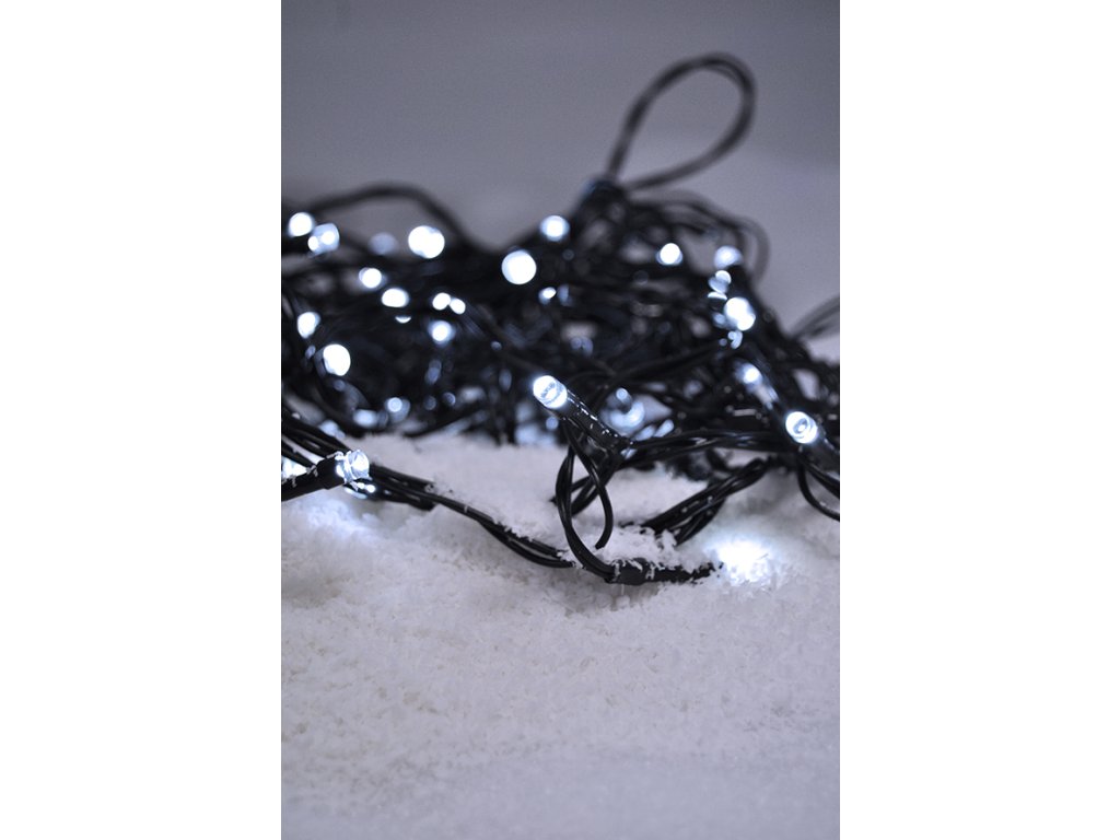 Počet LED diod: 400 2x hustota LED diod farba svetla: studená biela 8 svetelných režimov (blikanie, prelínanie, stmievanie atď.) pamäťová funkcia - po zapnutí sa aktivuje naposledy použitý svetelný režim vonkajšie a vnútorné použitie vzdialenosť žiarovky: 5 cm kábla: zelená spotreba energie: 5,5 W Napájanie: 230V AC/31V DC max. 6W Trieda ochrany: IP44 pracovná teplota: -20°C až +50°CDodatočné parametre