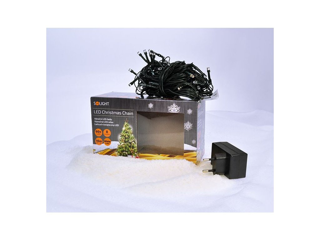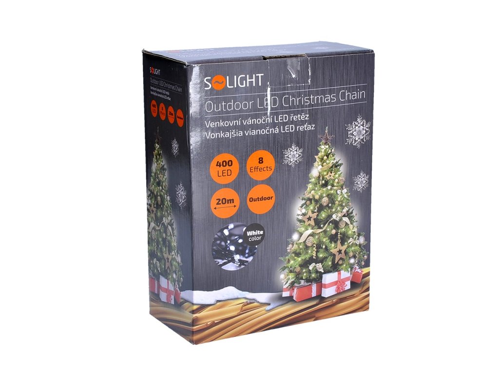 Solight LED vonkajšia vianočná reťaz, 400 LED, 20 m, 5 m vedenie, 8 funkcií, IP44, studená biela