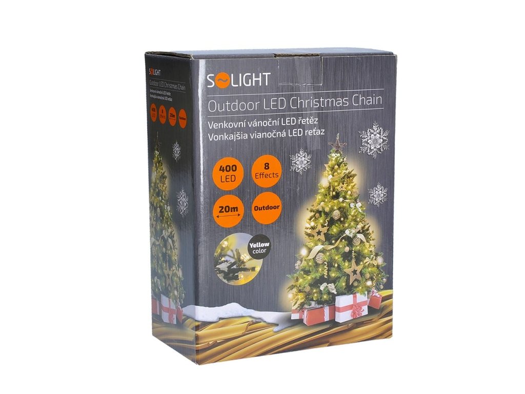 Solight LED vonkajšia vianočná reťaz, 400 LED, 20 m, 5 m vedenie, 8 funkcií, IP44, teplá biela