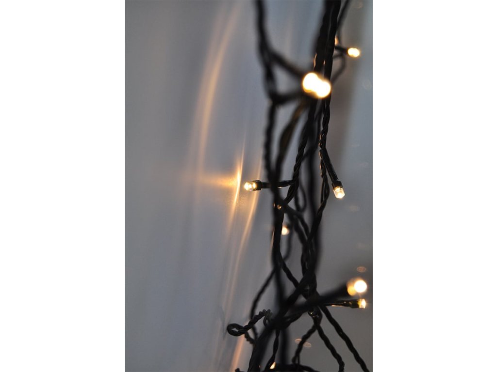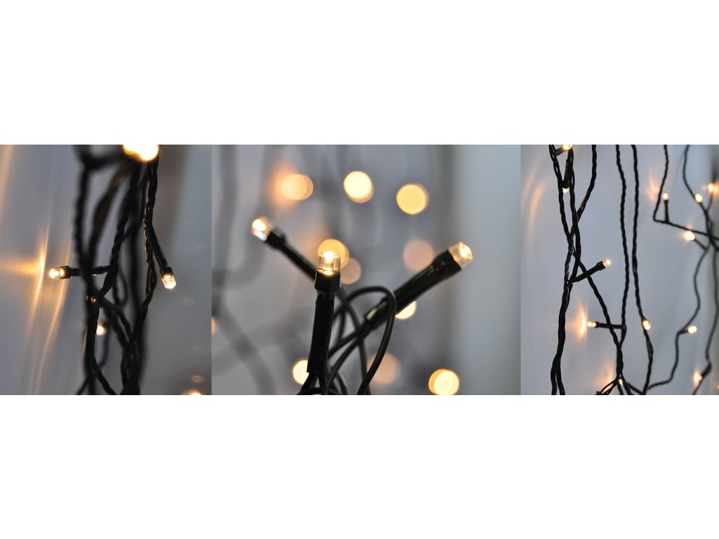 Počet LED diód: 400 2x hustota LED diód farba svetla: teplá biela (žltá) 8 svetelných režimov (blikanie, prelínanie, stmievanie atď.) pamäťová funkcia - po zapnutí sa aktivuje naposledy použitý svetelný režim vonkajšie a vnútorné použitie vzdialenosť žiarovky: 5 cm dĺžka osvetľovacieho kábla: 20 m dĺžka prívodného kábla: 5 m farba kábla: zelená spotreba energie: 5,5 W Napájanie: 230V AC/ 31V DC max. 6W Trieda ochrany: IP44 pracovná teplota: -20°C až +50°CDodatočné parametre