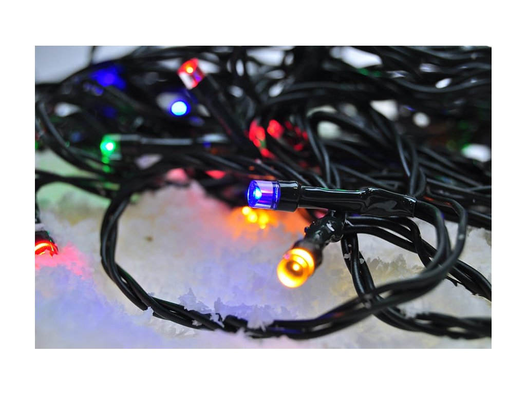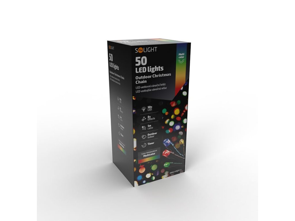 Solight LED vonkajšia vianočná reťaz, 50 LED diód, 5 m, 3 m vedenie, 8 funkcií, časovač, IP44, viacfarebná