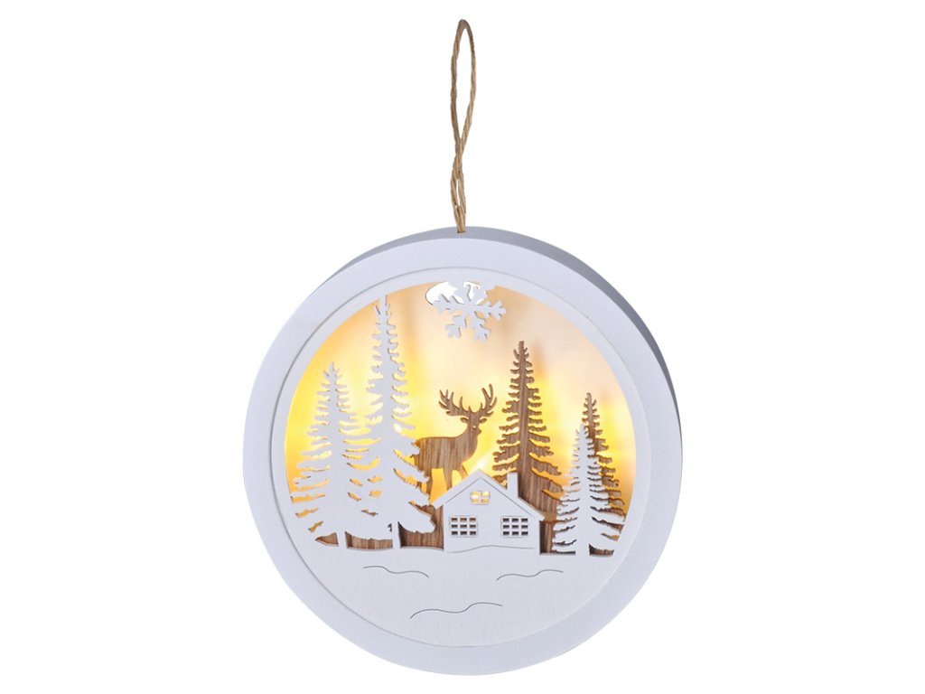 Solight LED závesná dekorácia, les a jeleň, biela a hnedá, 2x AAA