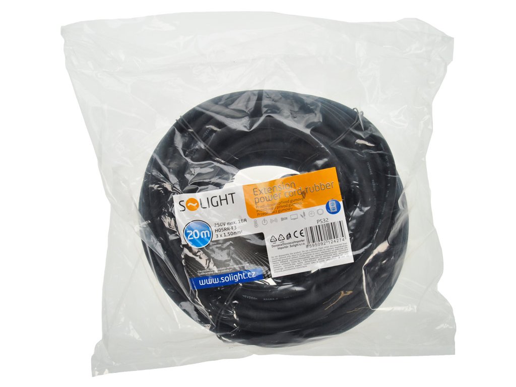 Solight predlžovací kábel - konektor, 1 zásuvka, 20 m, 3 x 1,5 mm2, guma, čierny